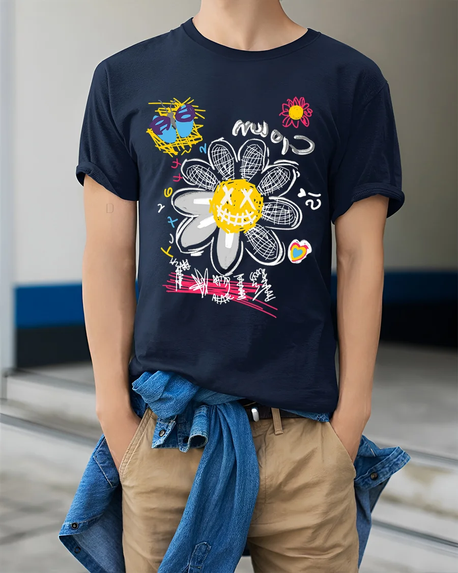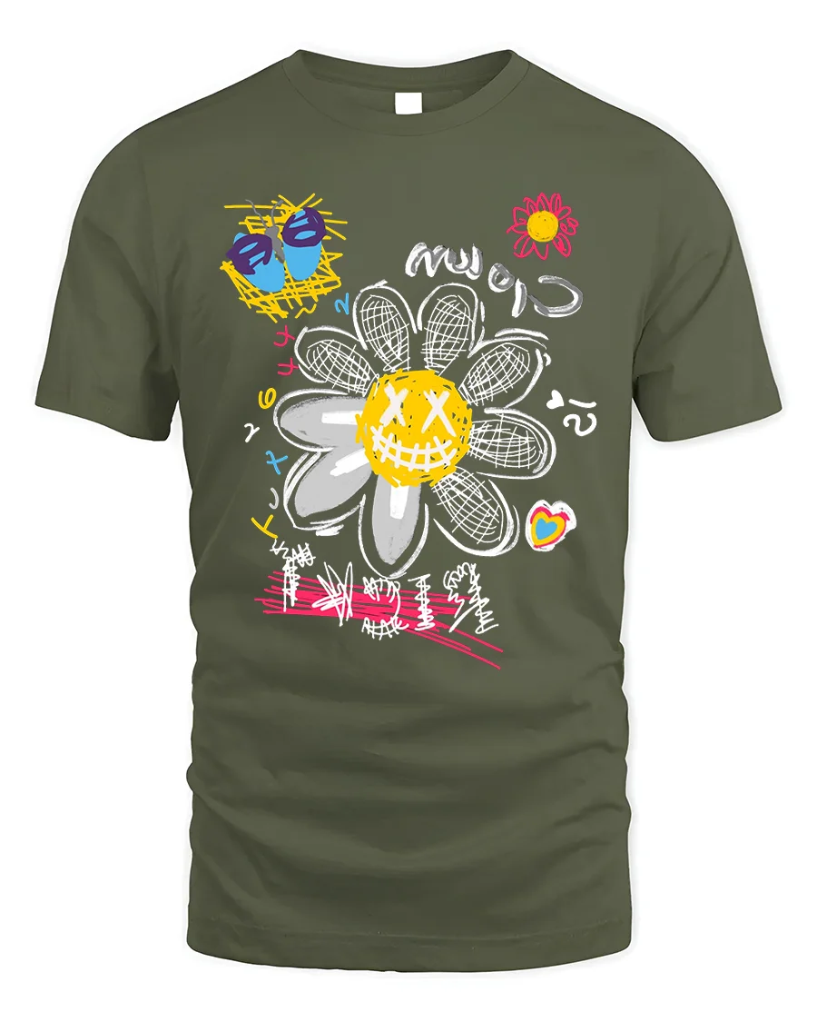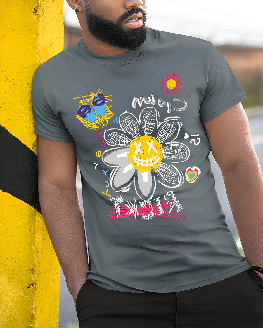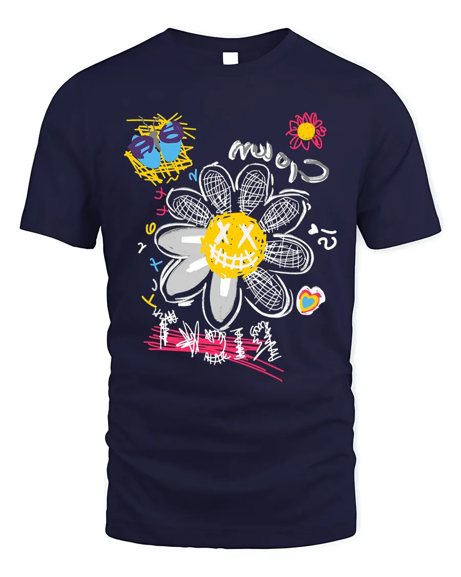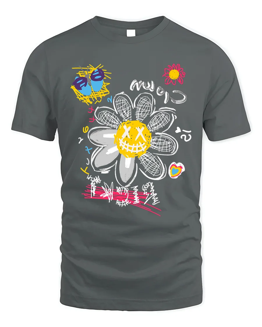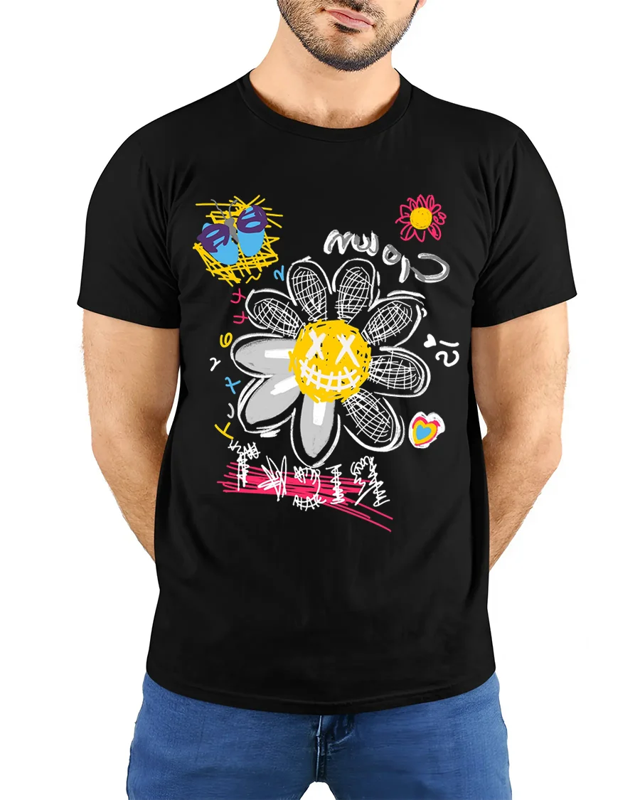 The Abstract Graffiti Smiley Flower Street Art T-Shirt is ideal for anyone who appreciates expressive, modern fashion with a touch of edge. Pair it with jeans, sneakers, or a denim jacket for a confident, creative look that stands out wherever you go.