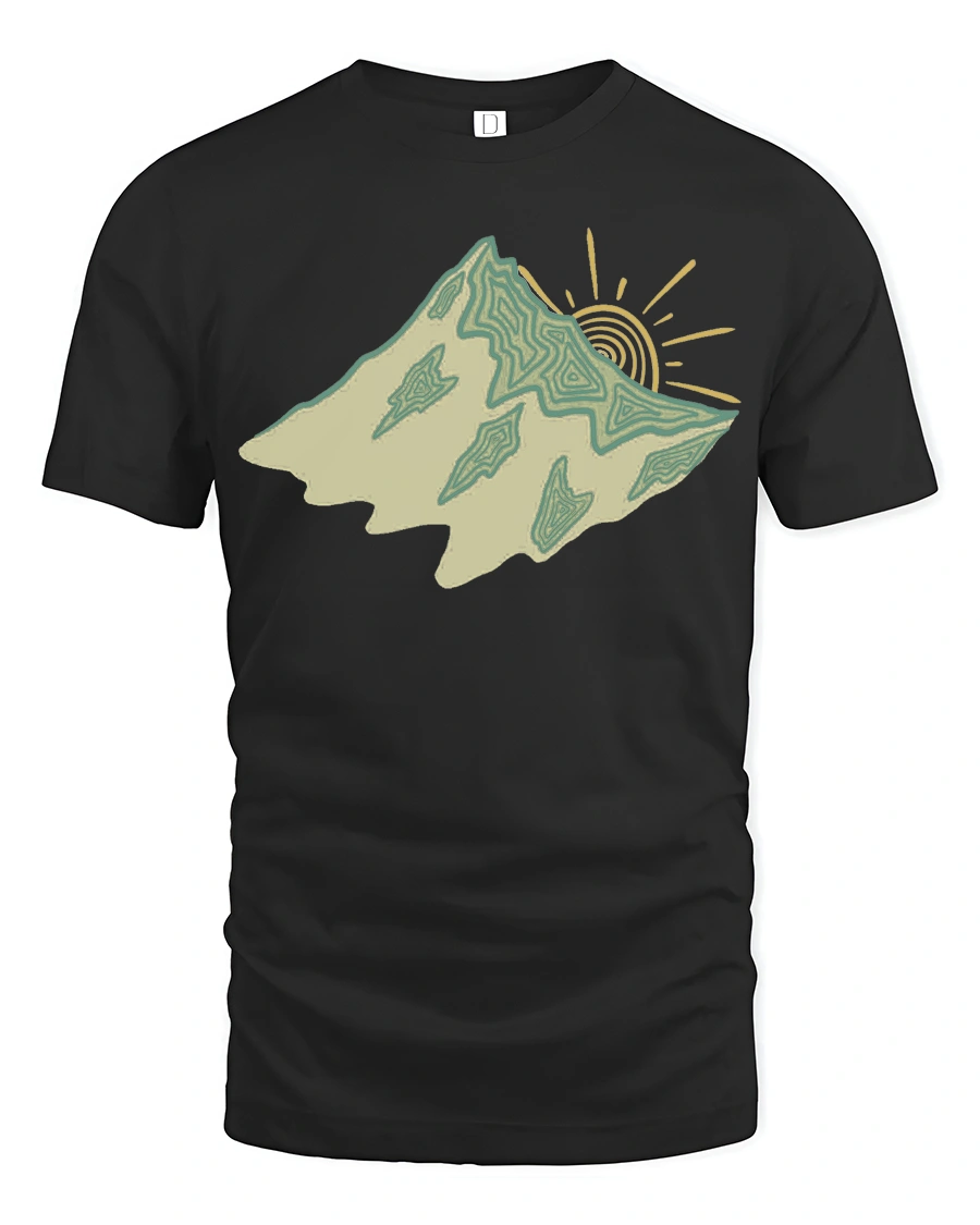 Abstract Mountain Sun Landscape Artistic Nature Graphic Tee Tshirt presents a modern interpretation of scenic outdoor environments through creative minimalist illustration style.