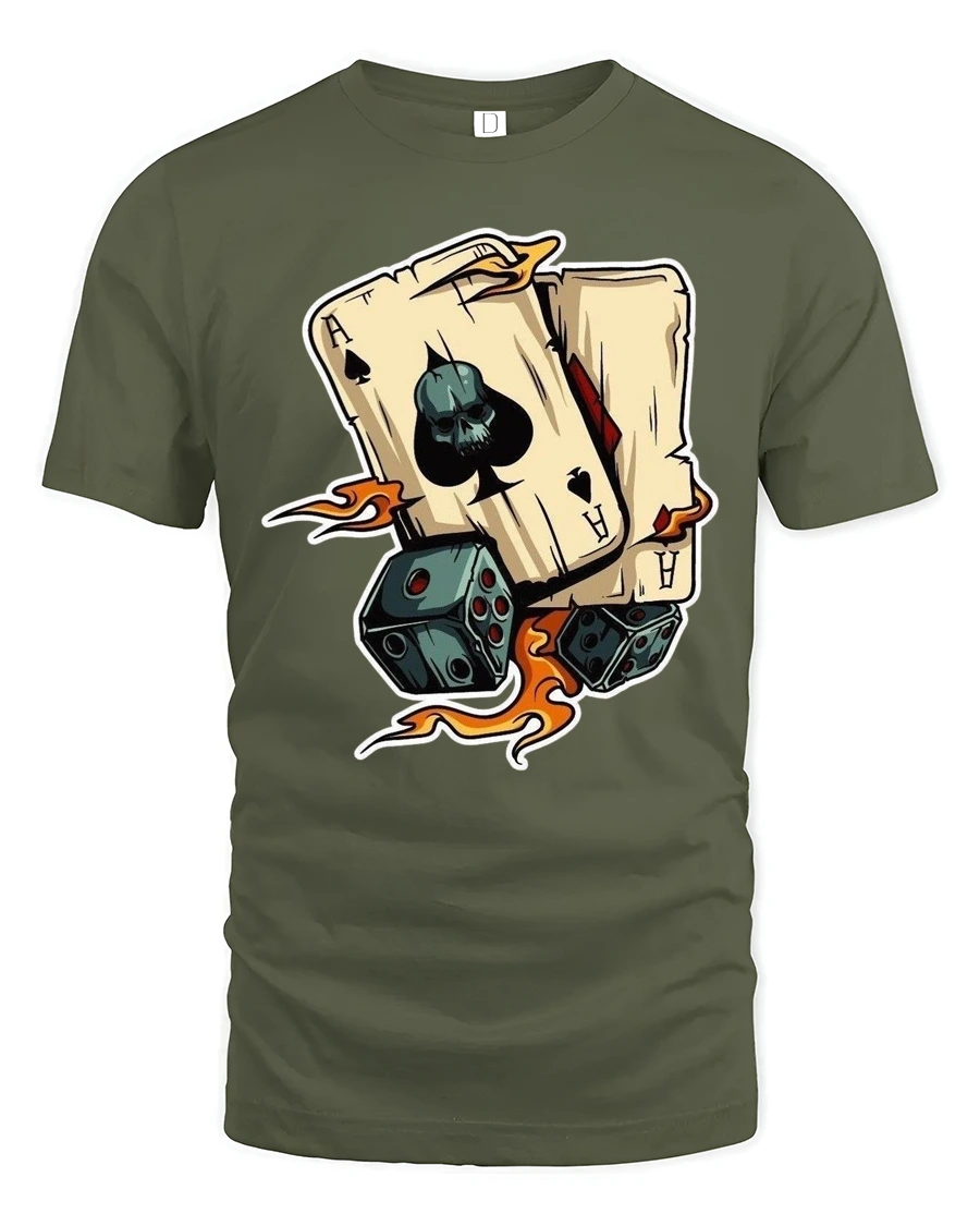 Perfect for poker enthusiasts card game fans and anyone who appreciates creative bold style this casino themed graphic tee adds personality and individuality to any wardrobe. The iconic ace and dice imagery symbolizes confidence excitement and fearless attitude making it ideal for casual wear social events or relaxed weekends. Designed to stand out this gambling graphic tshirt represents confidence creativity and classic game inspired fashion.