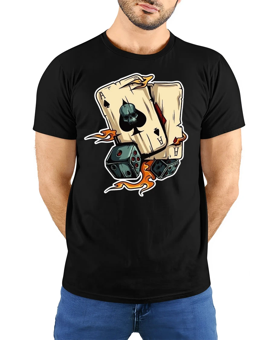 Ace Skull Playing Cards Dice Graphic Tshirt Lucky Gambler Style