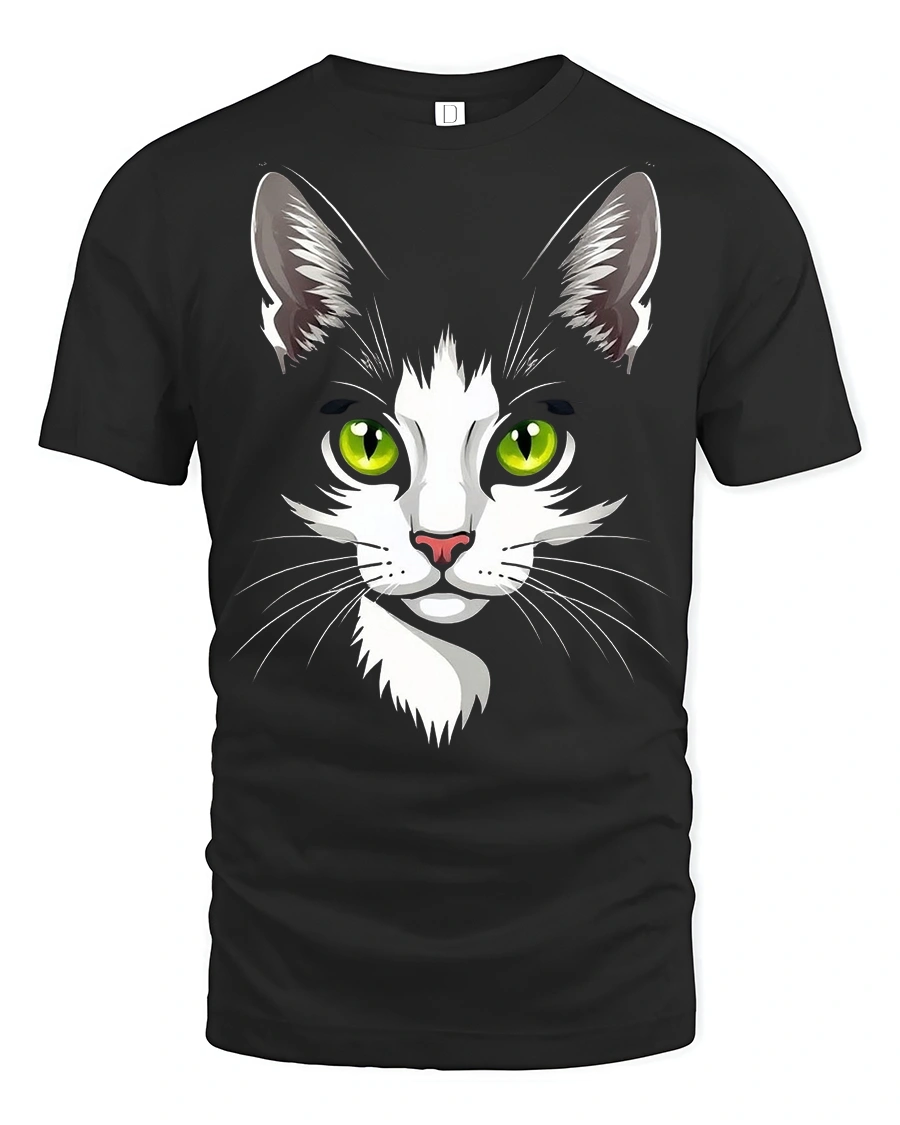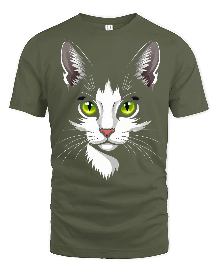 Adorable Cat Face Green Eyes Cute Pet Graphic T Shirt showcases a striking and adorable design that instantly captures attention.