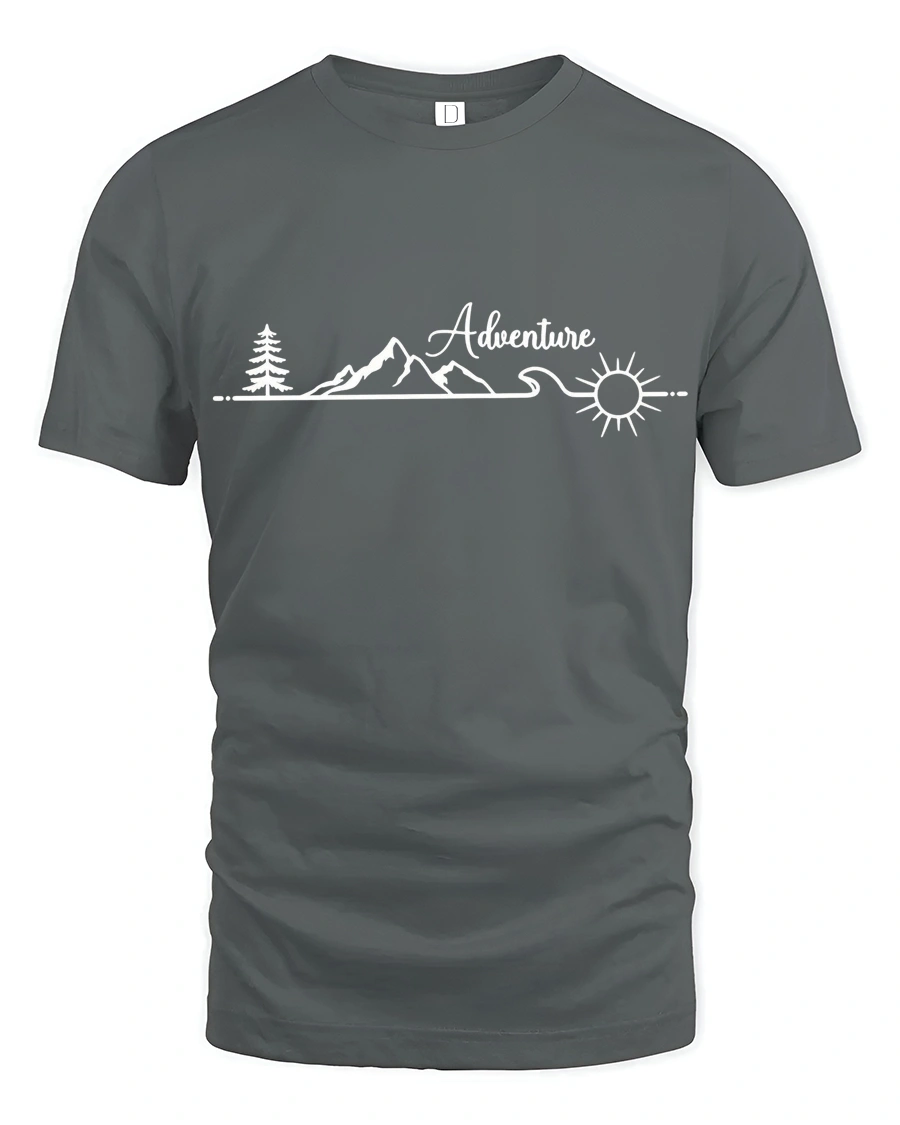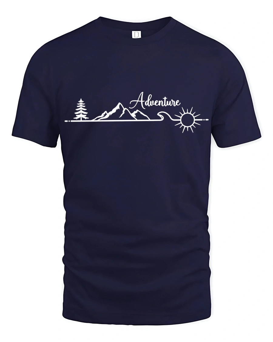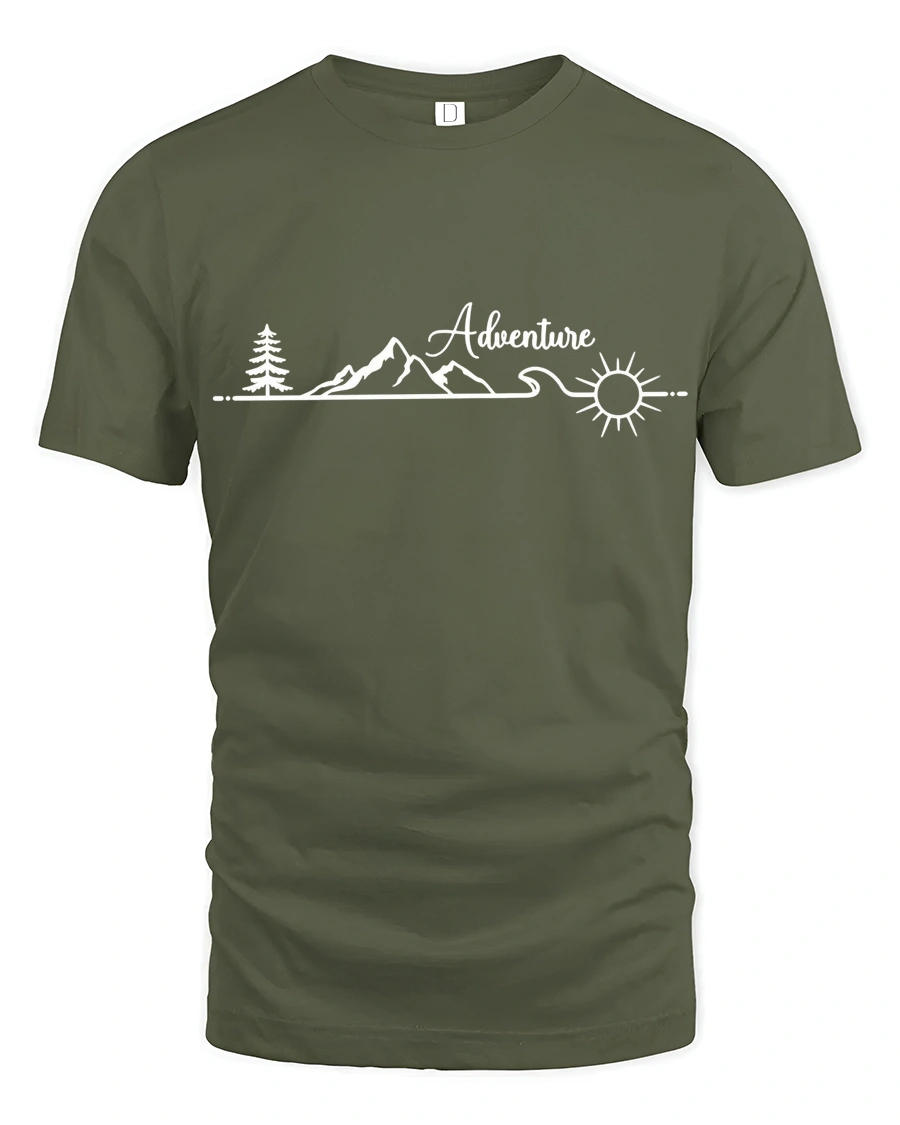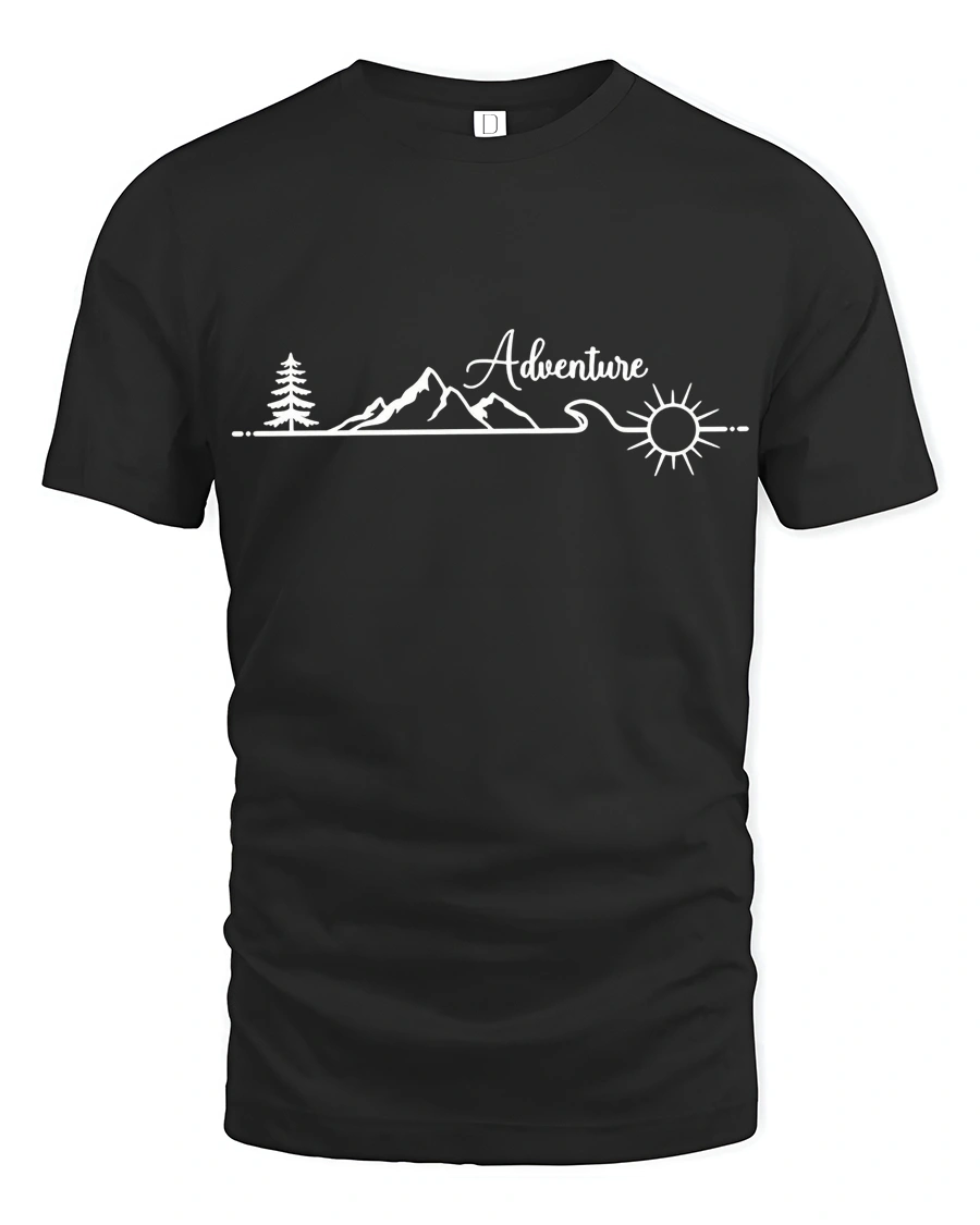 Express your love for exploration with the Adventure Mountain Line Art Graphic Tshirt Minimal Outdoor Style that captures the peaceful beauty of nature through a clean and modern design. The simple landscape illustration featuring mountains sun and trees creates a calm visual balance that reflects curiosity freedom and appreciation for outdoor journeys. Soft comfortable fabric provides an easy wearing experience while the minimalist artwork adds timeless character to everyday fashion.
