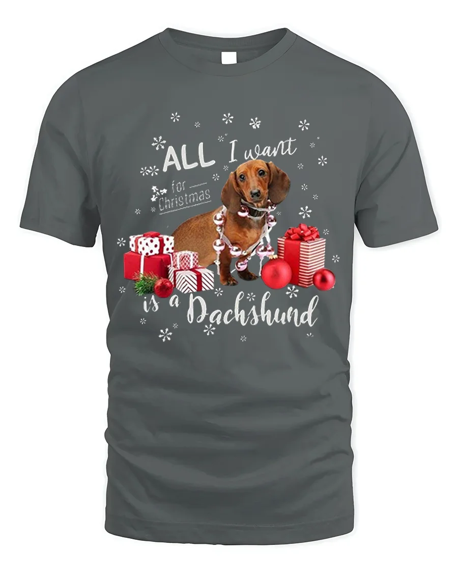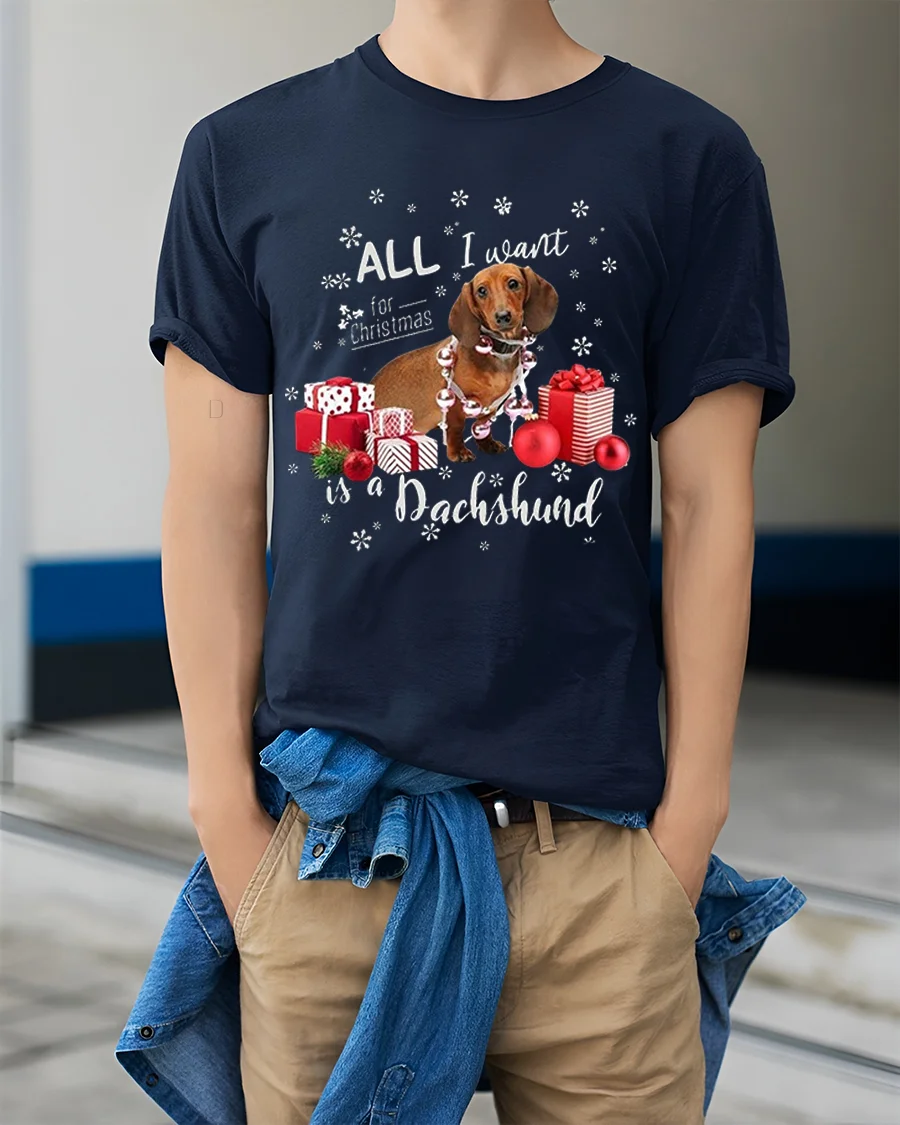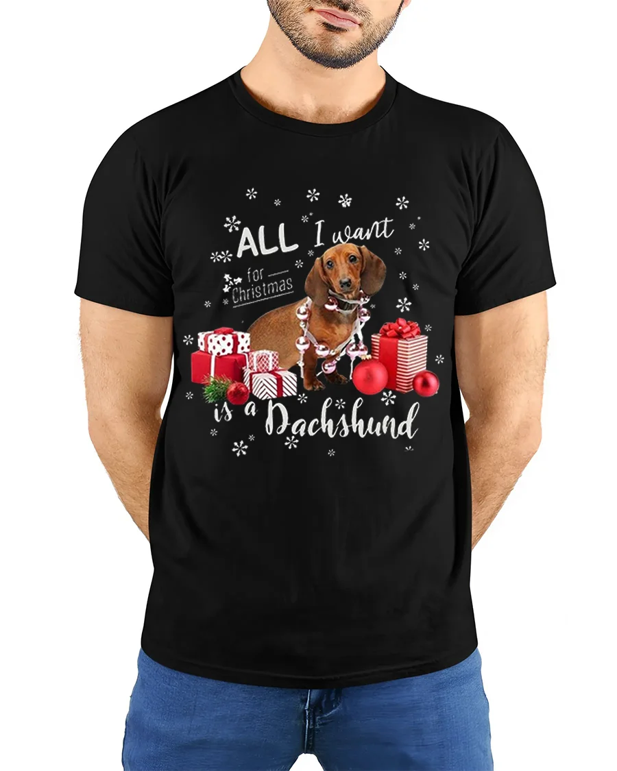 The All I Want for Christmas Is a Dachshund Dog T-Shirt makes a perfect gift for dachshund owners, dog moms, or anyone who loves adorable pets. Ideal for Secret Santa exchanges, pet-themed holiday events, or cozy nights at home. Celebrate the season with this heartwarming tee that shows the world what you truly want for Christmas — your beloved dachshund.