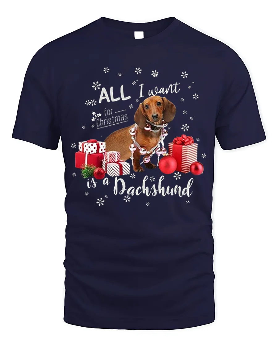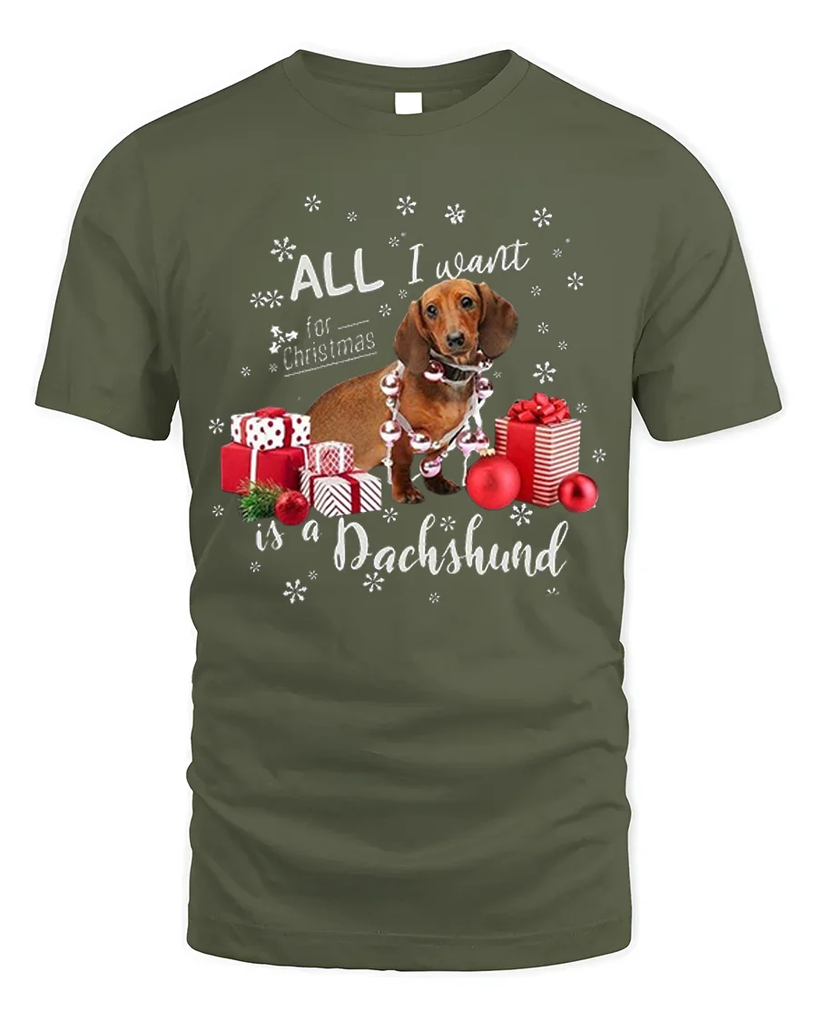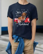 Show your love for your favorite four-legged friend with the All I Want for Christmas Is a Dachshund Dog T-Shirt. This adorable design features a cute dachshund surrounded by Christmas gifts, ornaments, and snowflakes, perfectly capturing the holiday spirit. It’s the ultimate festive tee for dog lovers who know that Christmas isn’t complete without their loyal dachshund.