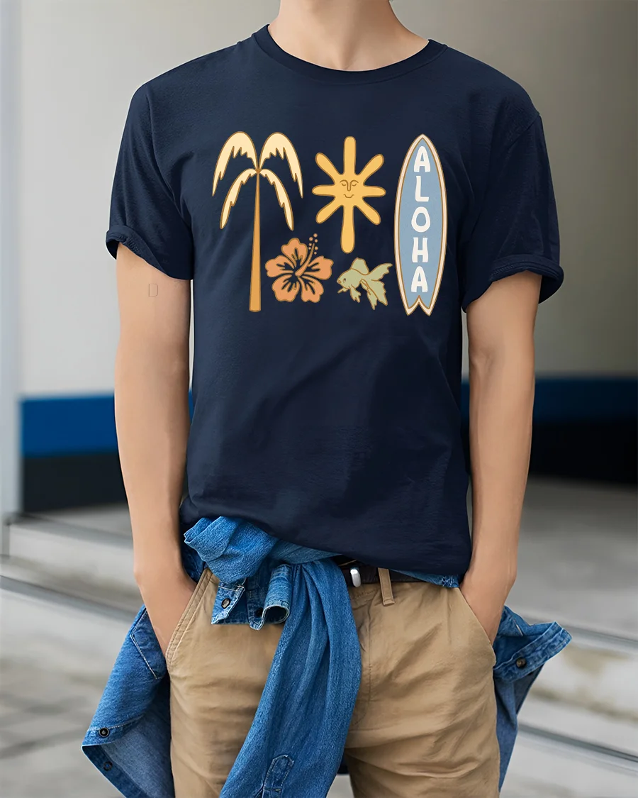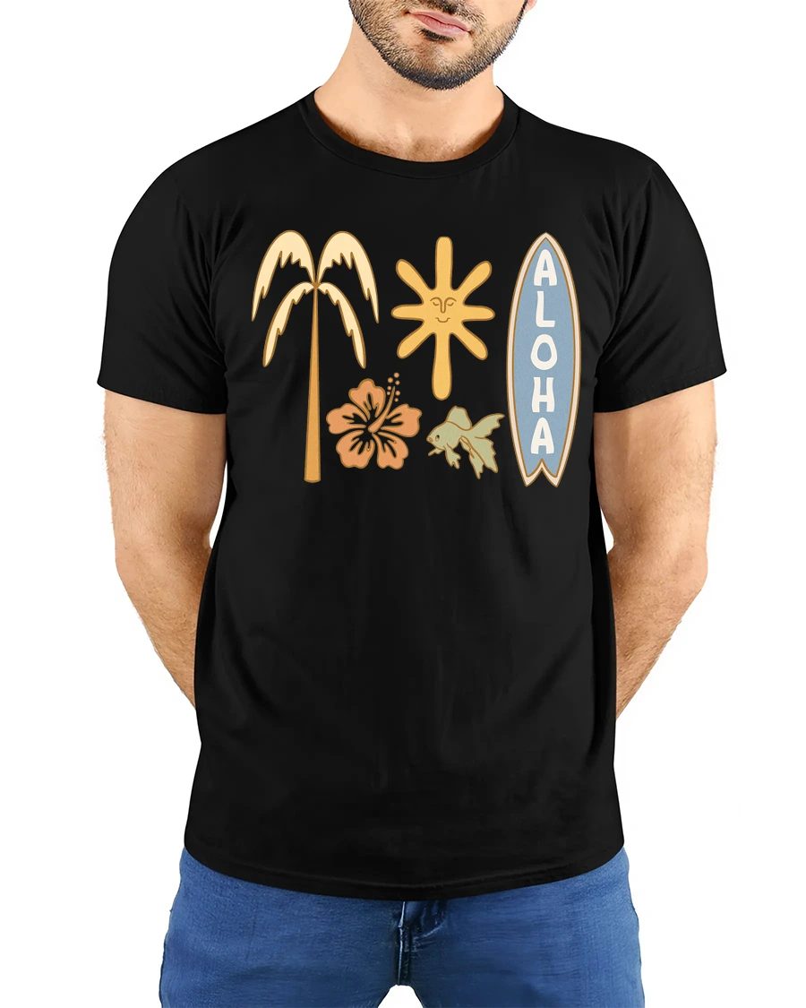 Bring warm island energy everywhere you go with this Aloha Tropical Surf Vibes Graphic Tee Hawaiian Beach Style inspired by relaxed beach culture and sunny ocean days. The design blends palm tree, surfboard, tropical flower, sunshine, and ocean life icons that capture the carefree feeling of paradise and endless summer moments. This stylish graphic makes a fun statement while keeping a clean retro aesthetic that never goes out of trend.