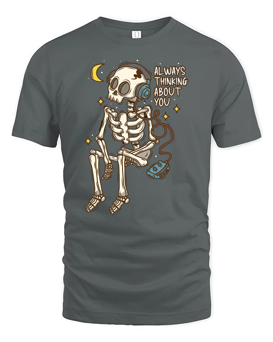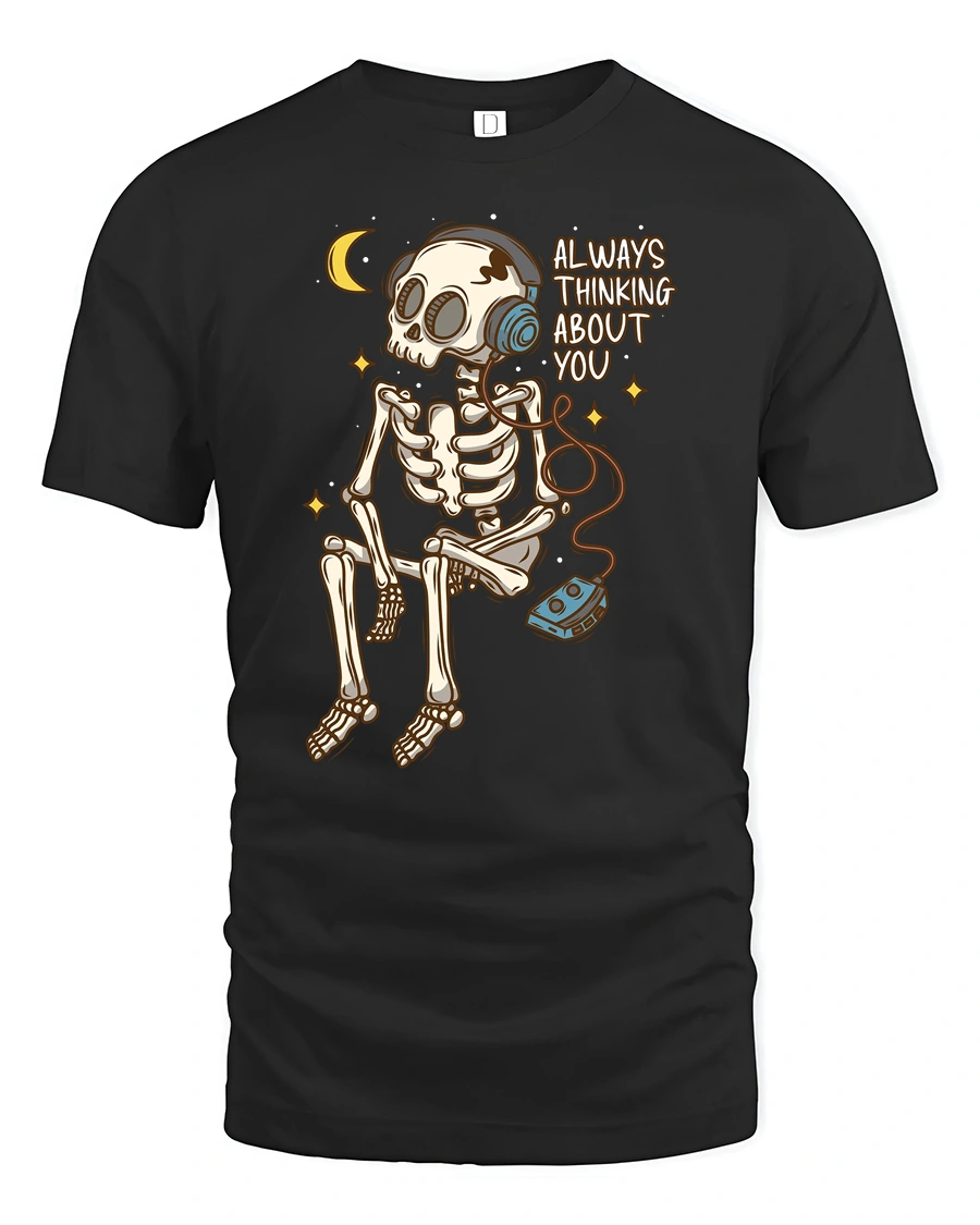Always Thinking About You Skeleton Music Lover Tee Tshirt brings together humor romance and chill music vibes in one standout design.