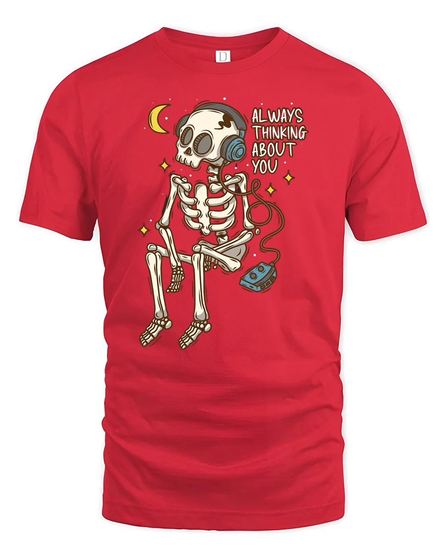 Always Thinking About You Skeleton Music Lover Tee Tshirt - red t-shirt on white background