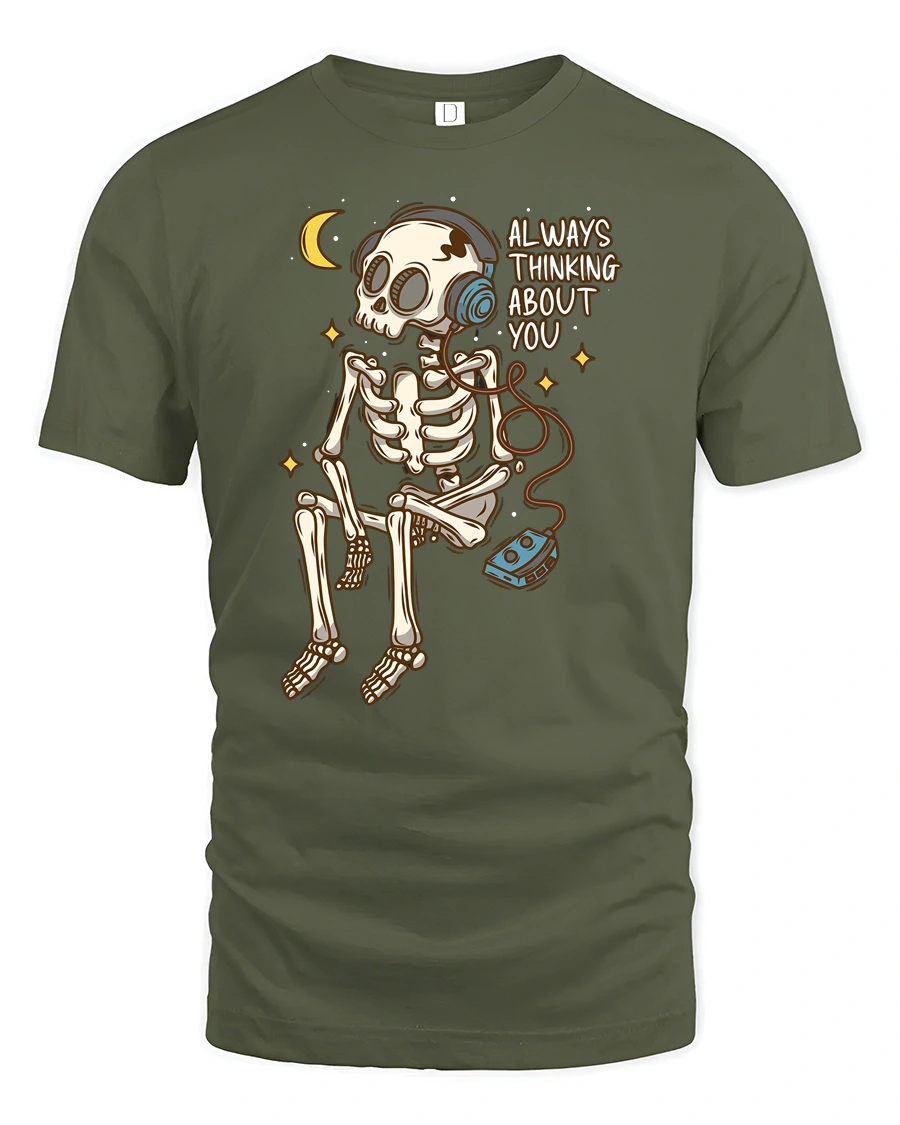 Always Thinking About You Skeleton Music Lover Tee Tshirt - military green t-shirt on white background