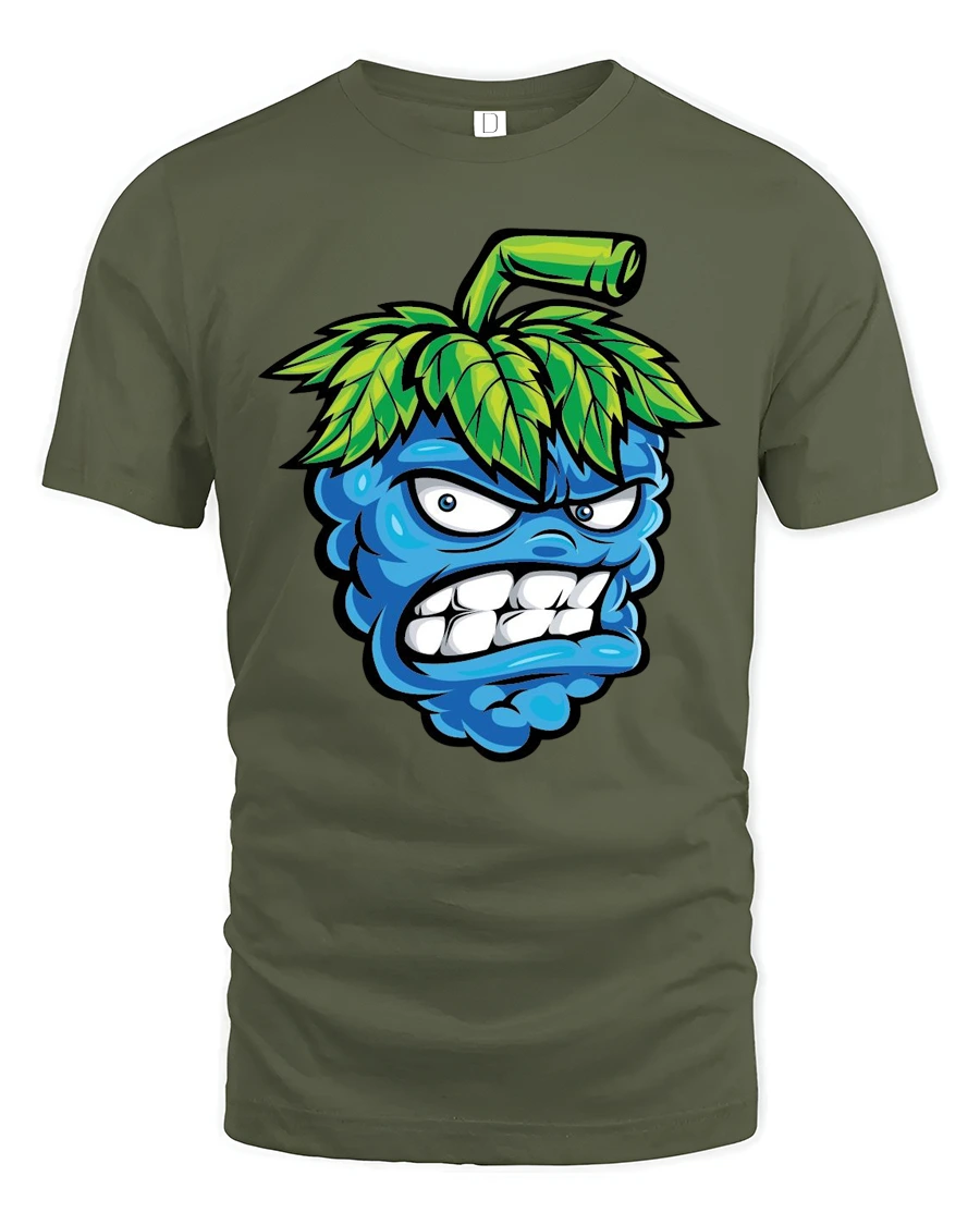 Angry Blueberry Monster Tshirt Funny Fruit Cartoon Graphic - military green t-shirt on white background