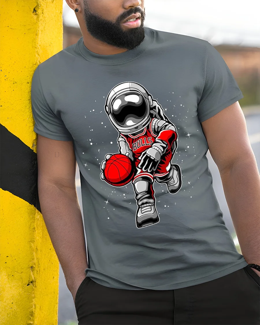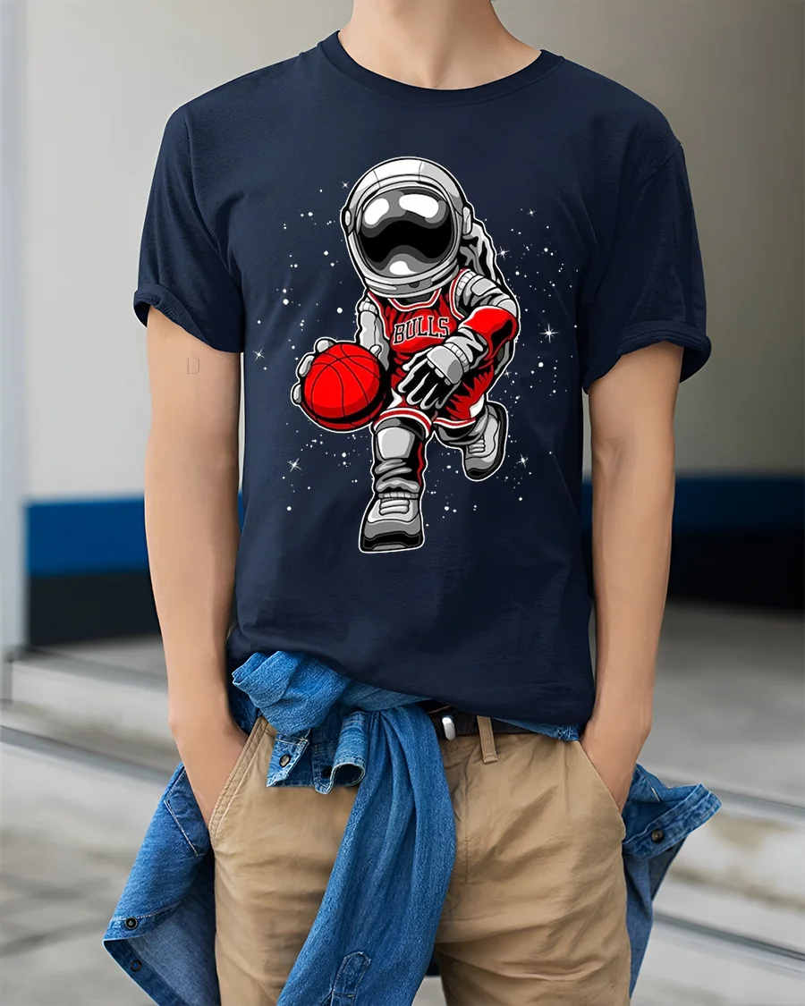 Made from soft, breathable material, this astronaut basketball t-shirt is built for all-day comfort while keeping its striking design sharp and vivid wash after wash. The durable print ensures the cosmic artwork pops with color and detail, making it a reliable piece for casual wear or basketball-inspired fashion.
