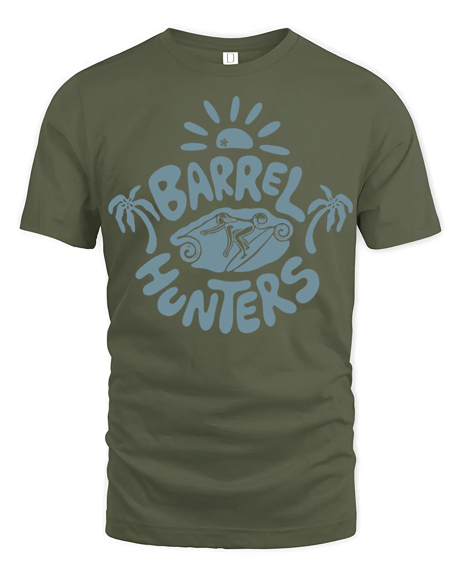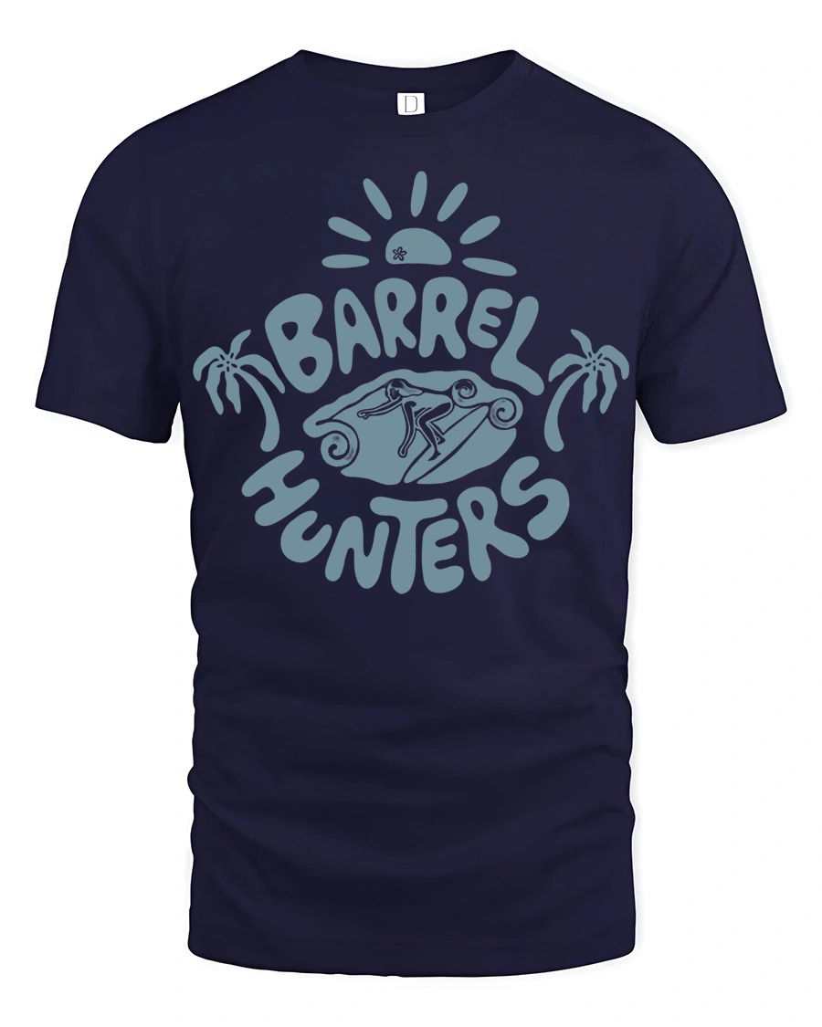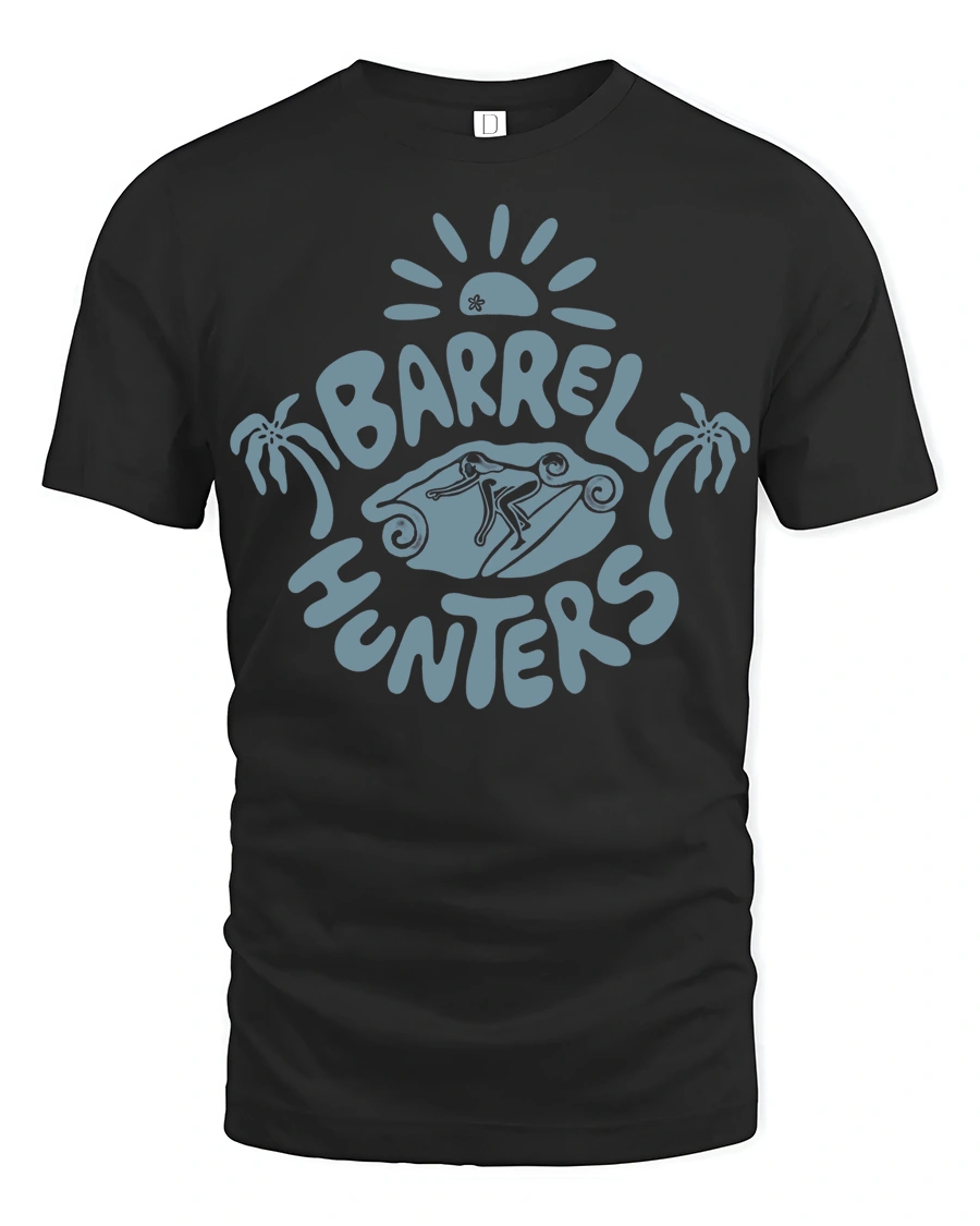 This tshirt provides a comfortable feel ideal for everyday outfits, beach trips, travel experiences, or casual social moments. The barrel hunters message symbolizes dedication to wave chasing and appreciation for ocean energy. Its versatile look pairs easily with shorts, denim, or layered outfits, creating a confident and expressive style inspired by coastal living.