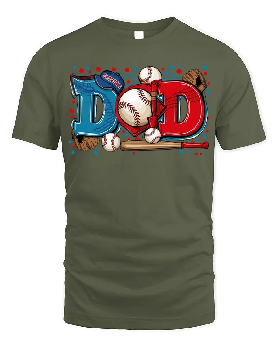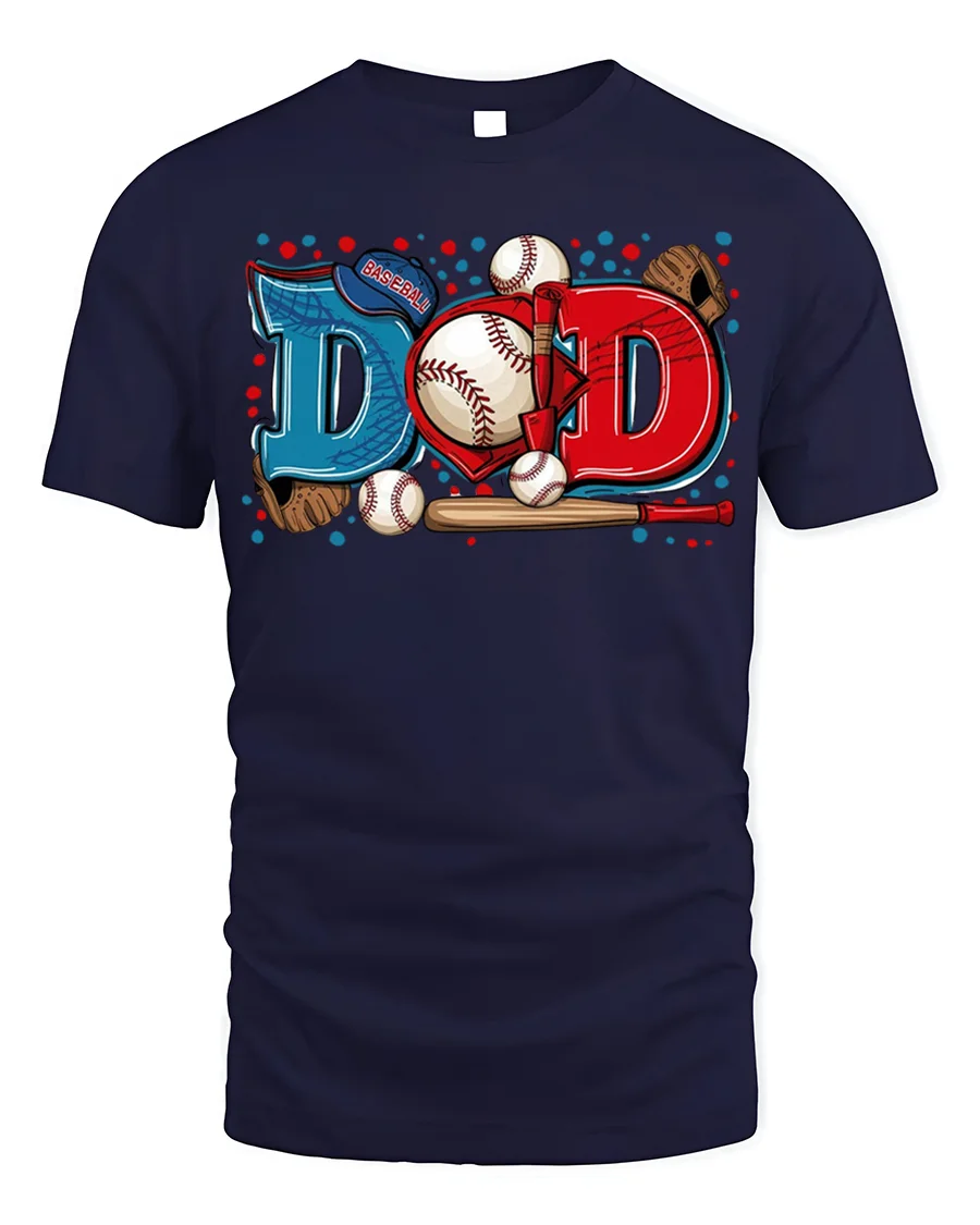 Celebrate the bond between fatherhood and America’s favorite pastime with the Baseball Dad Sports Glove and Bat Graphic T-Shirt. Featuring a bold and colorful design that spells out “DAD” with baseballs, bats, gloves, and a cap integrated into the artwork, this tee perfectly captures the spirit of being a supportive baseball dad. It’s an ideal shirt for cheering at games, coaching little league, or simply showing your pride for the sport and your family.