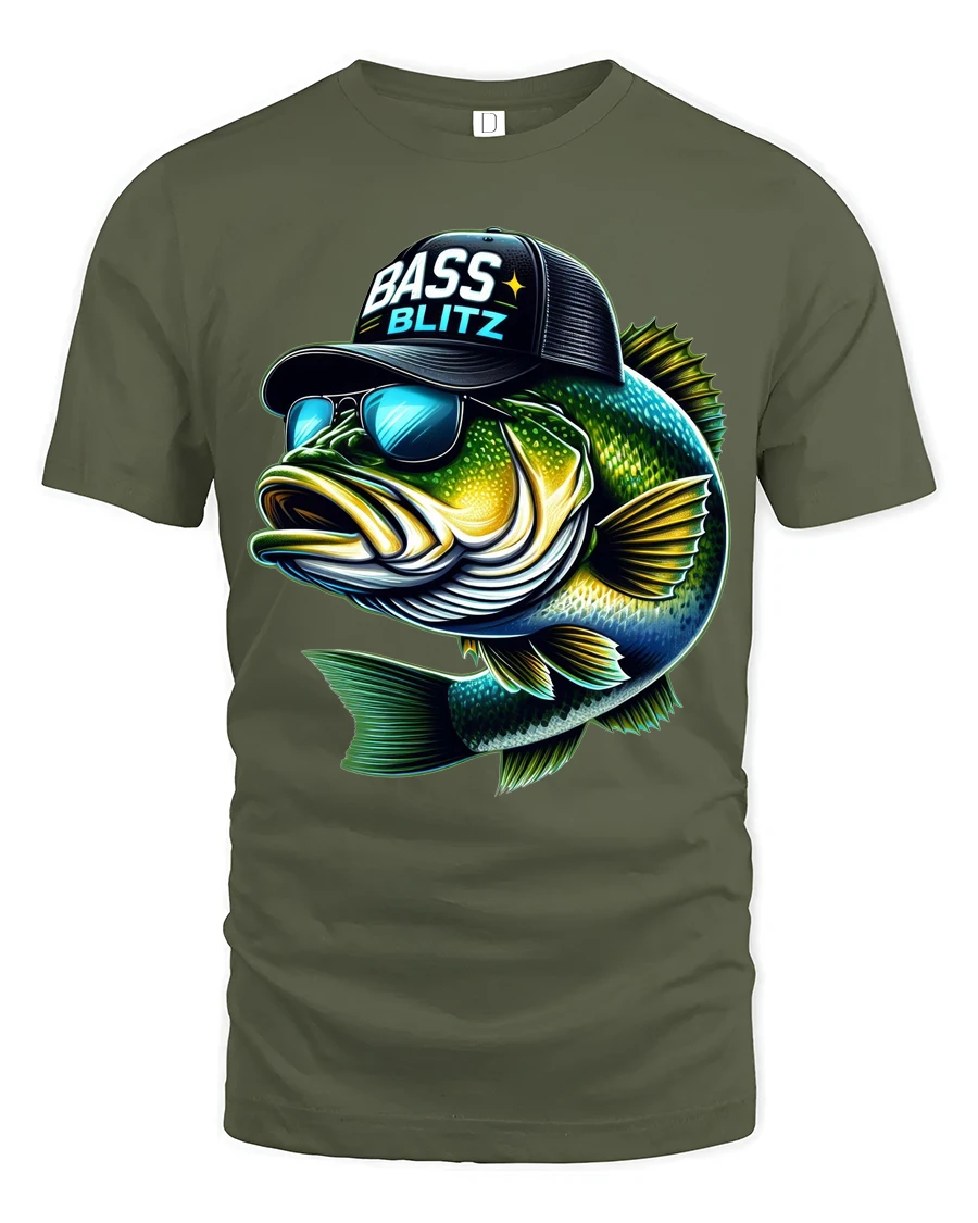 Bass Blitz Cool Fishing Bass With Sunglasses Graphic T Shirt - military green t-shirt on white background