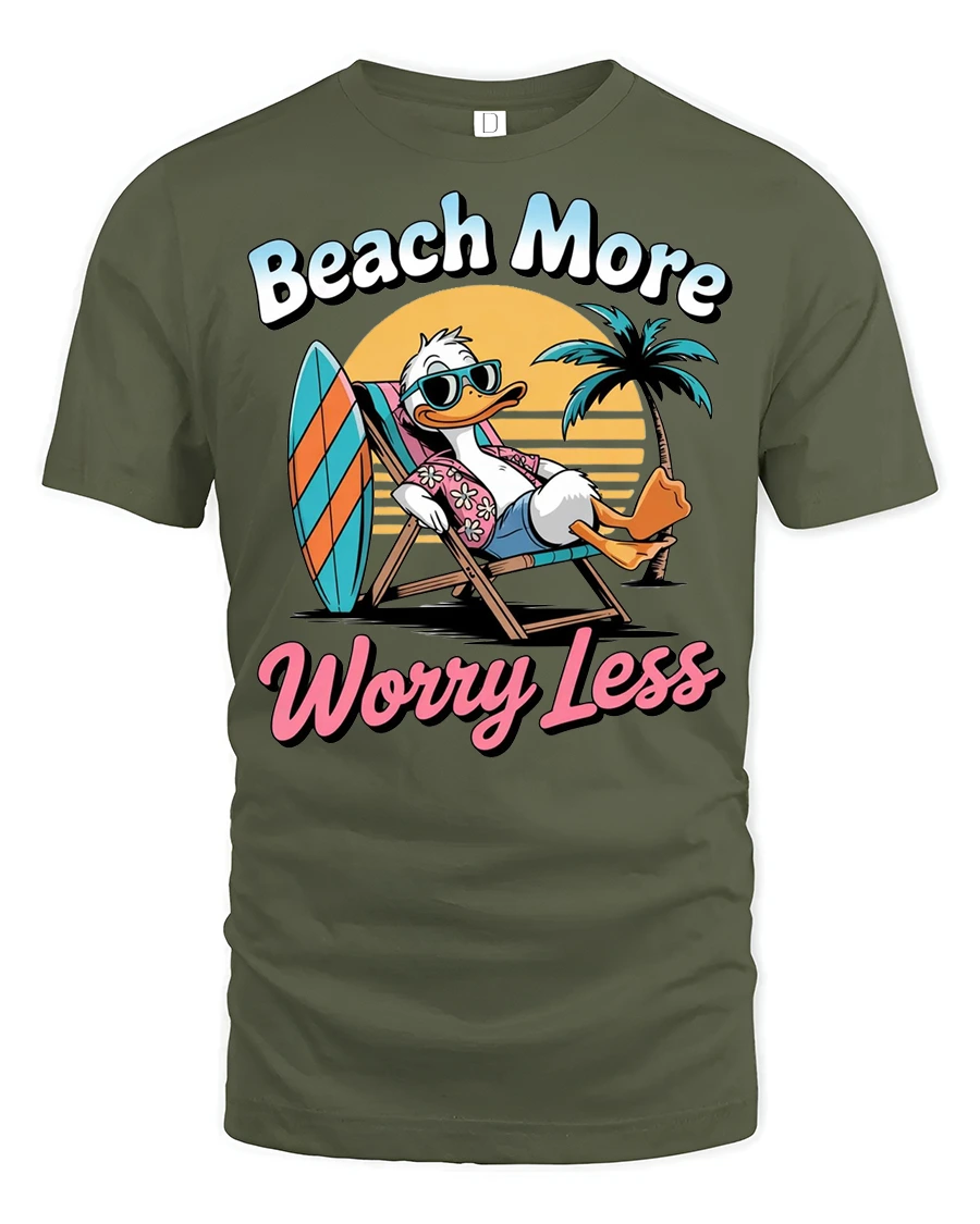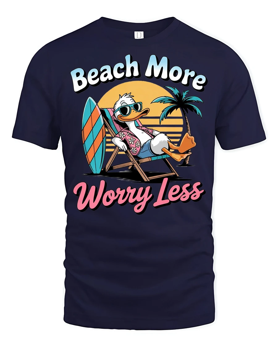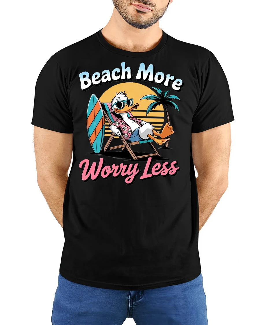 Enjoy carefree summer moments with the Beach More Worry Less Duck Graphic Tshirt Funny Summer Vacation Style that captures the joyful spirit of relaxation and sunshine. The playful duck lounging by the beach brings a lighthearted mood that instantly reminds you to enjoy life and stress less. Soft comfortable fabric provides an easy wearing experience while the colorful design adds cheerful personality to casual outfits.