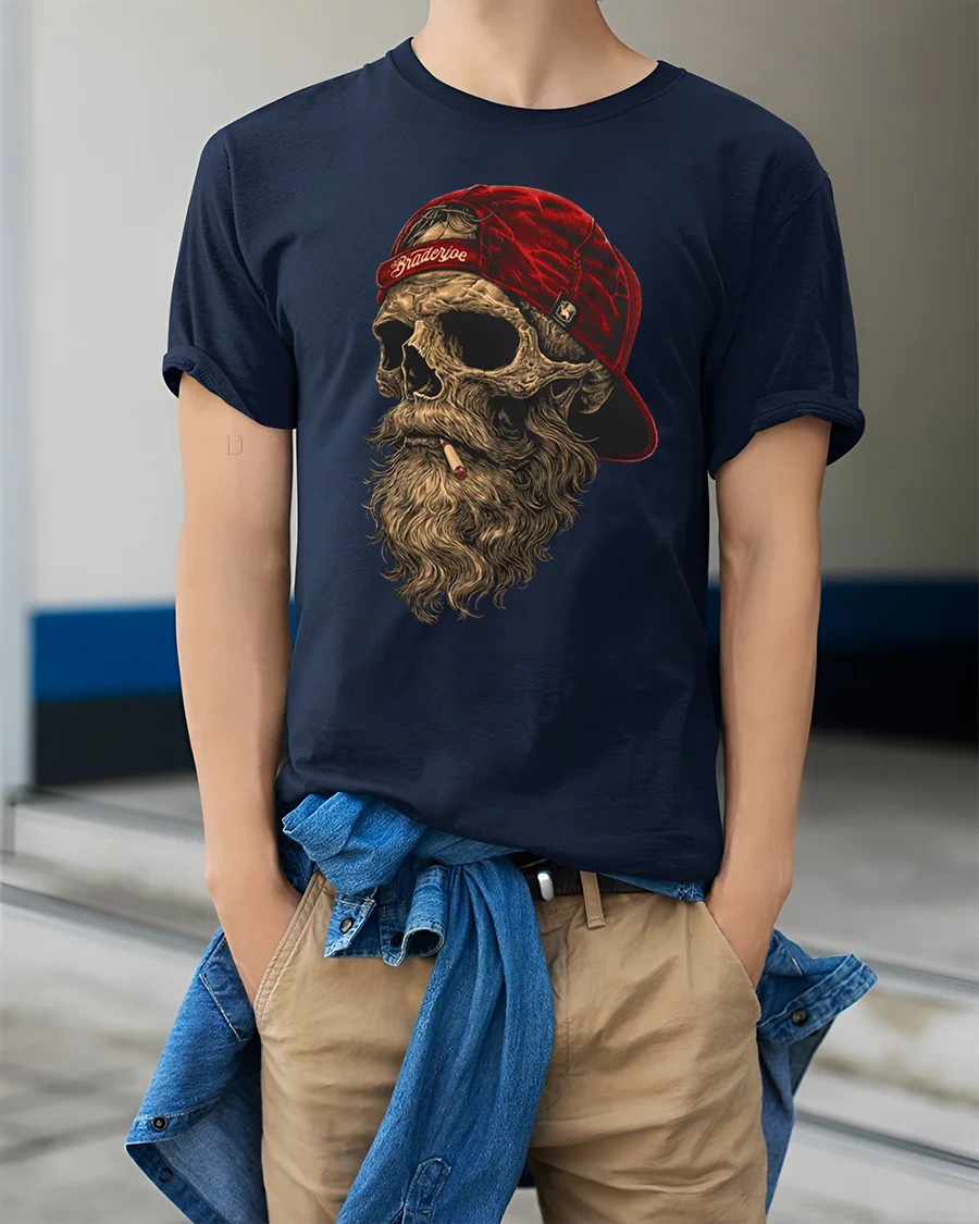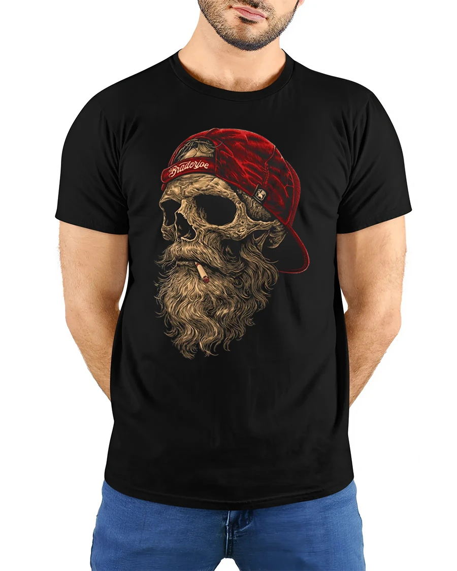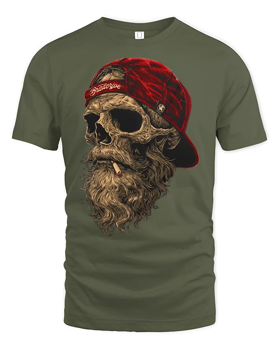 Bearded Skull With Red Cap Rebel Biker Graphic T Shirt delivers a bold and gritty style inspired by rebellious street culture and biker attitude.