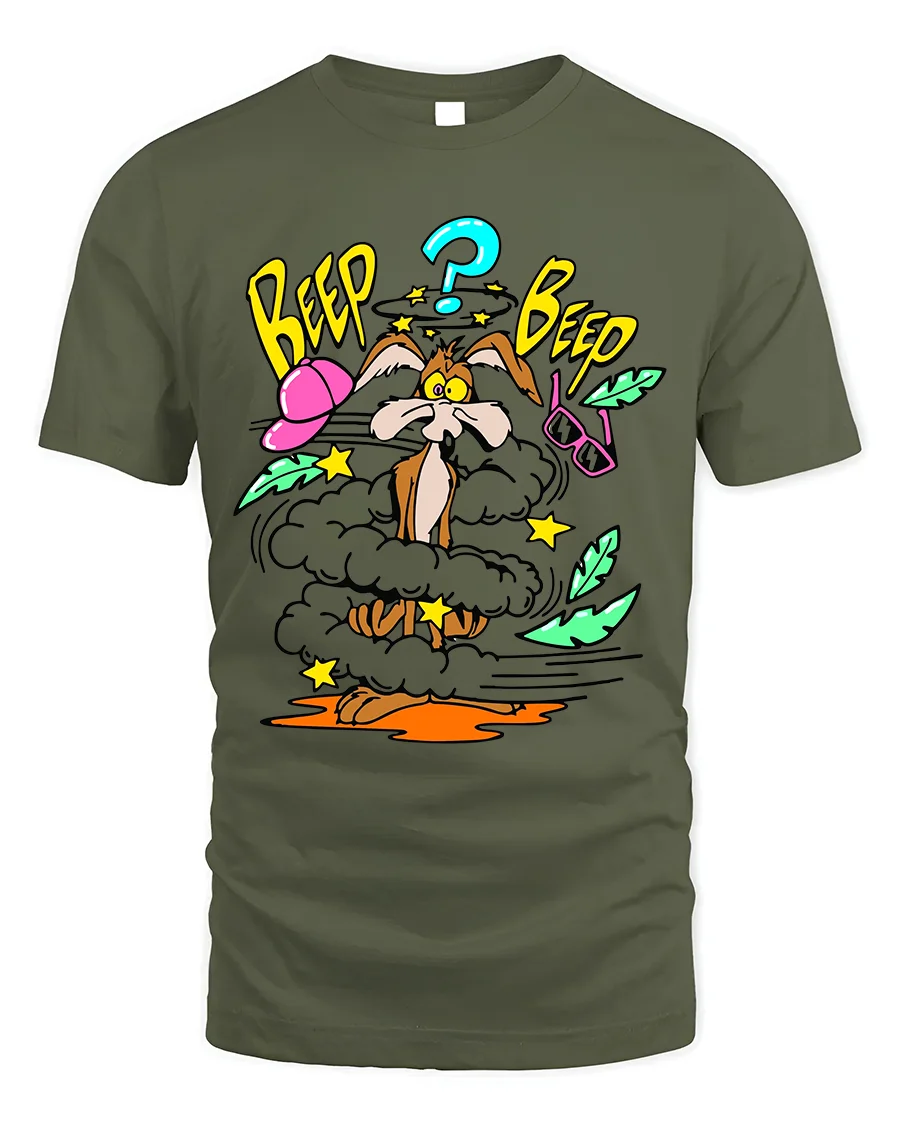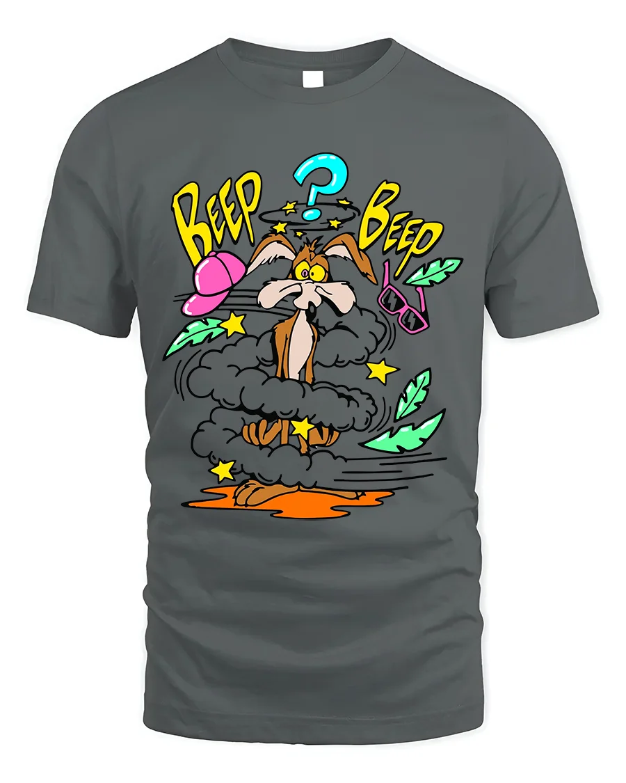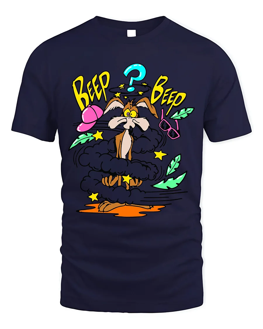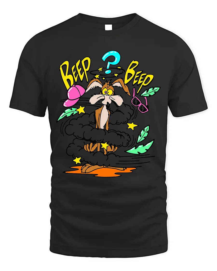 Featuring a hilarious comic-style explosion scene with a confused cartoon coyote, this tee captures the nostalgic humor and chaos of vintage animation.