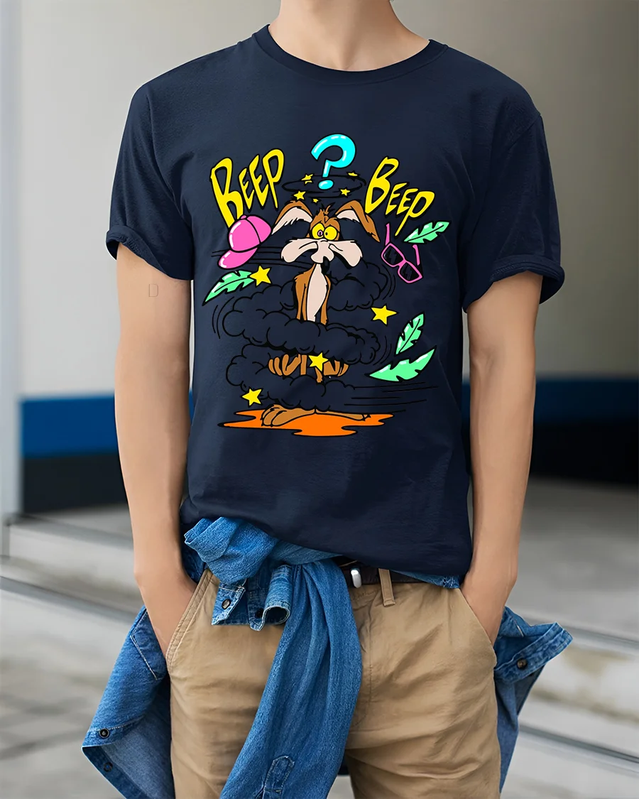 The Beep Beep Funny Cartoon Explosion Retro Style Graphic T-Shirt pairs effortlessly with jeans, shorts, or sneakers for a relaxed and stylish outfit.