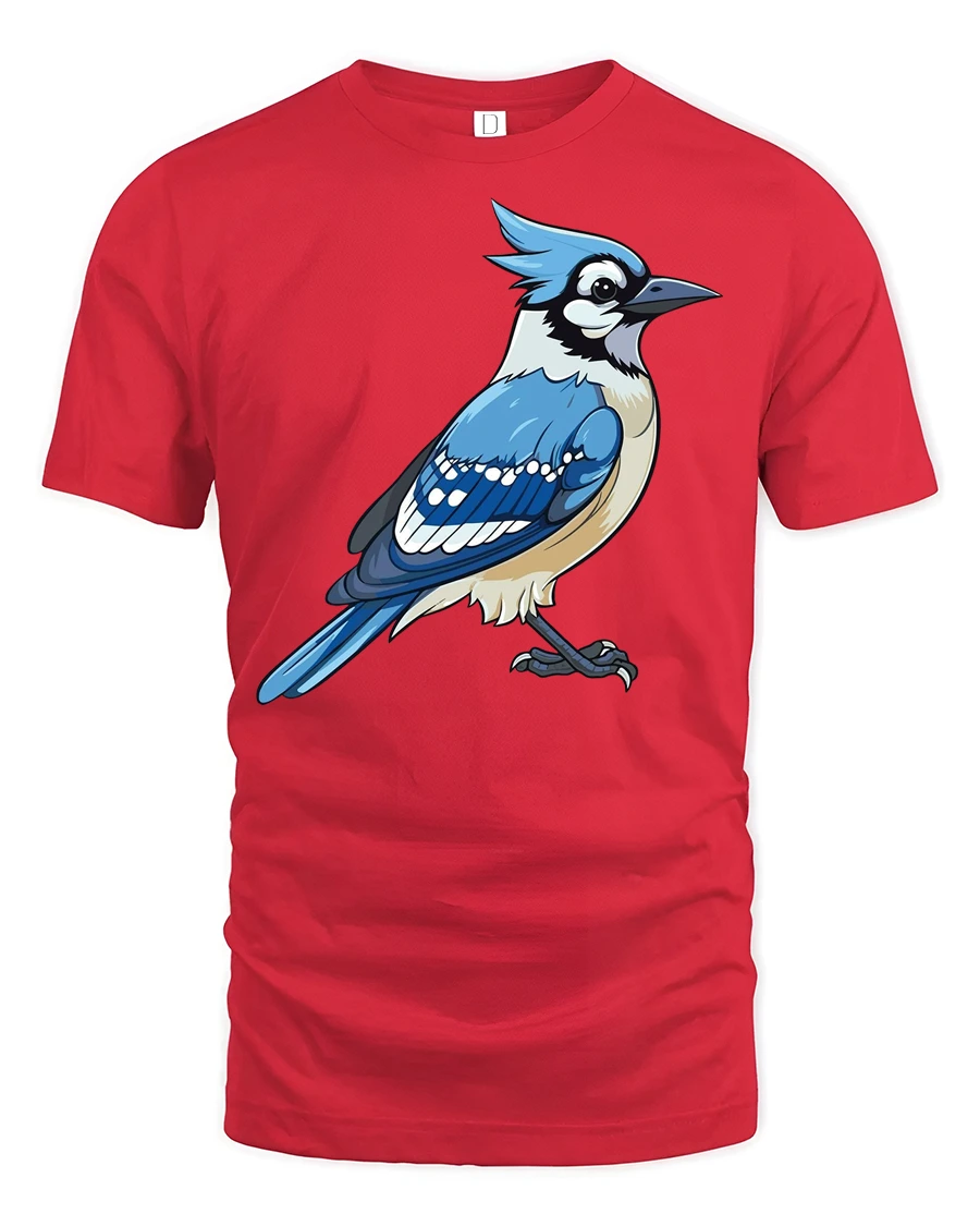Blue Jay Bird Graphic T Shirt Cute Nature Wildlife Art Style Tee - red t-shirt on white background