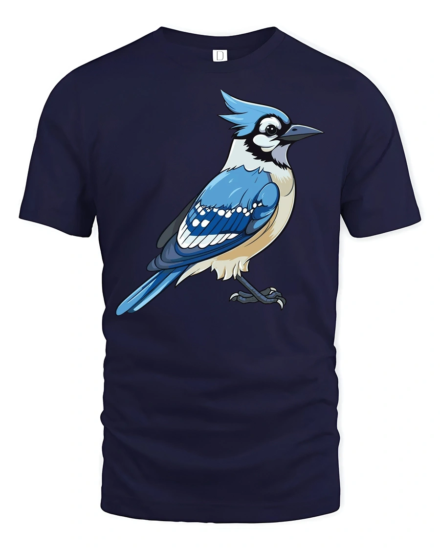 Featuring a detailed illustration of a blue jay, this graphic captures the elegance and lively spirit of one of the most iconic birds.
