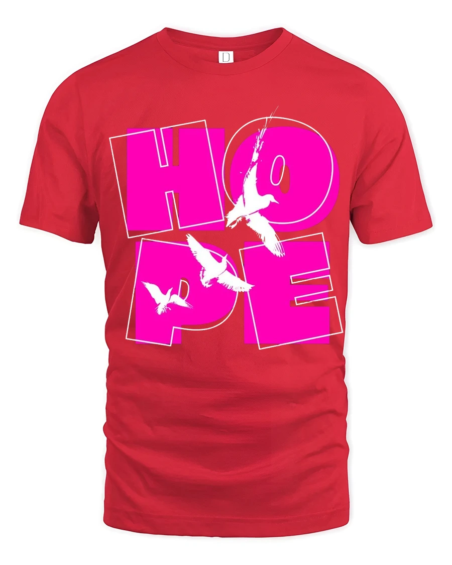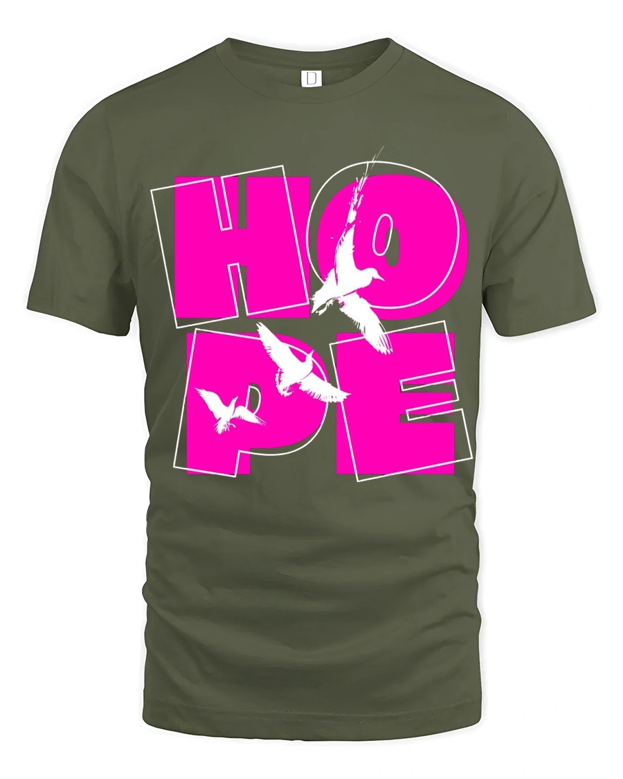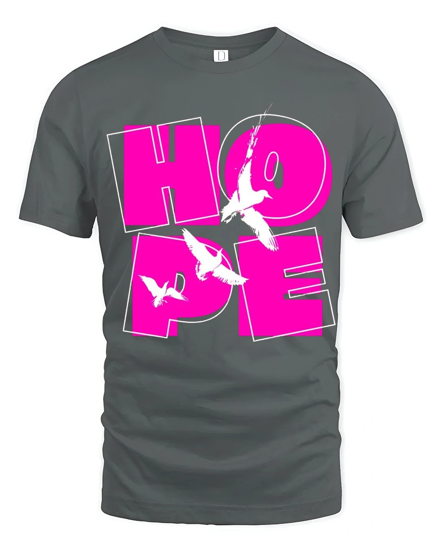 Bold Hope Word Graphic T Shirt With Flying Birds Design delivers a powerful message through clean typography and artistic detail.