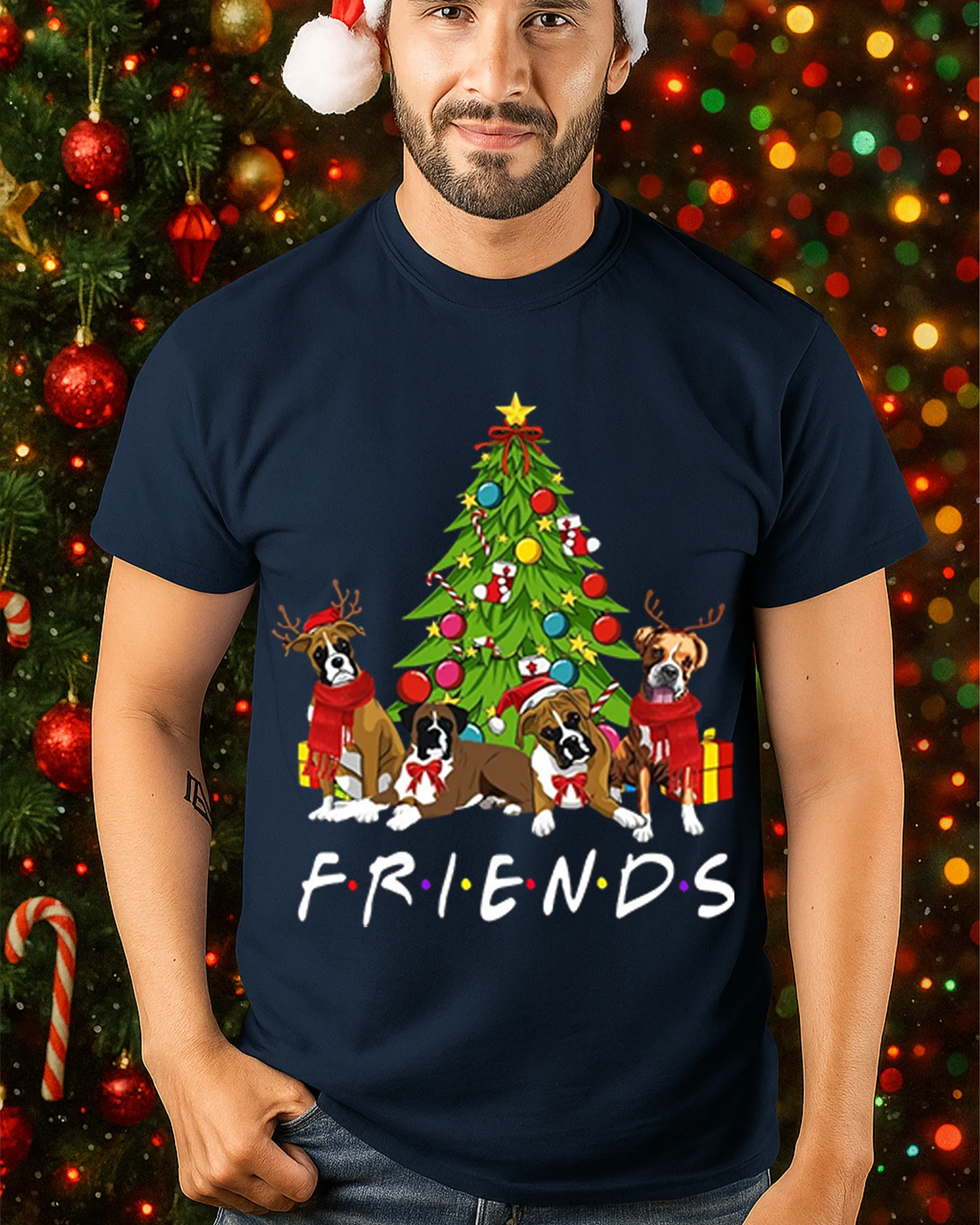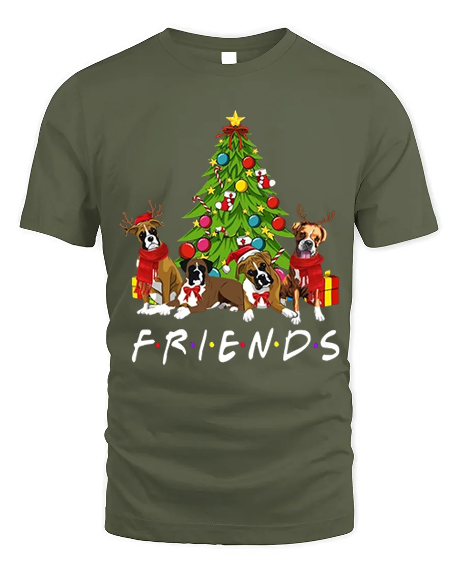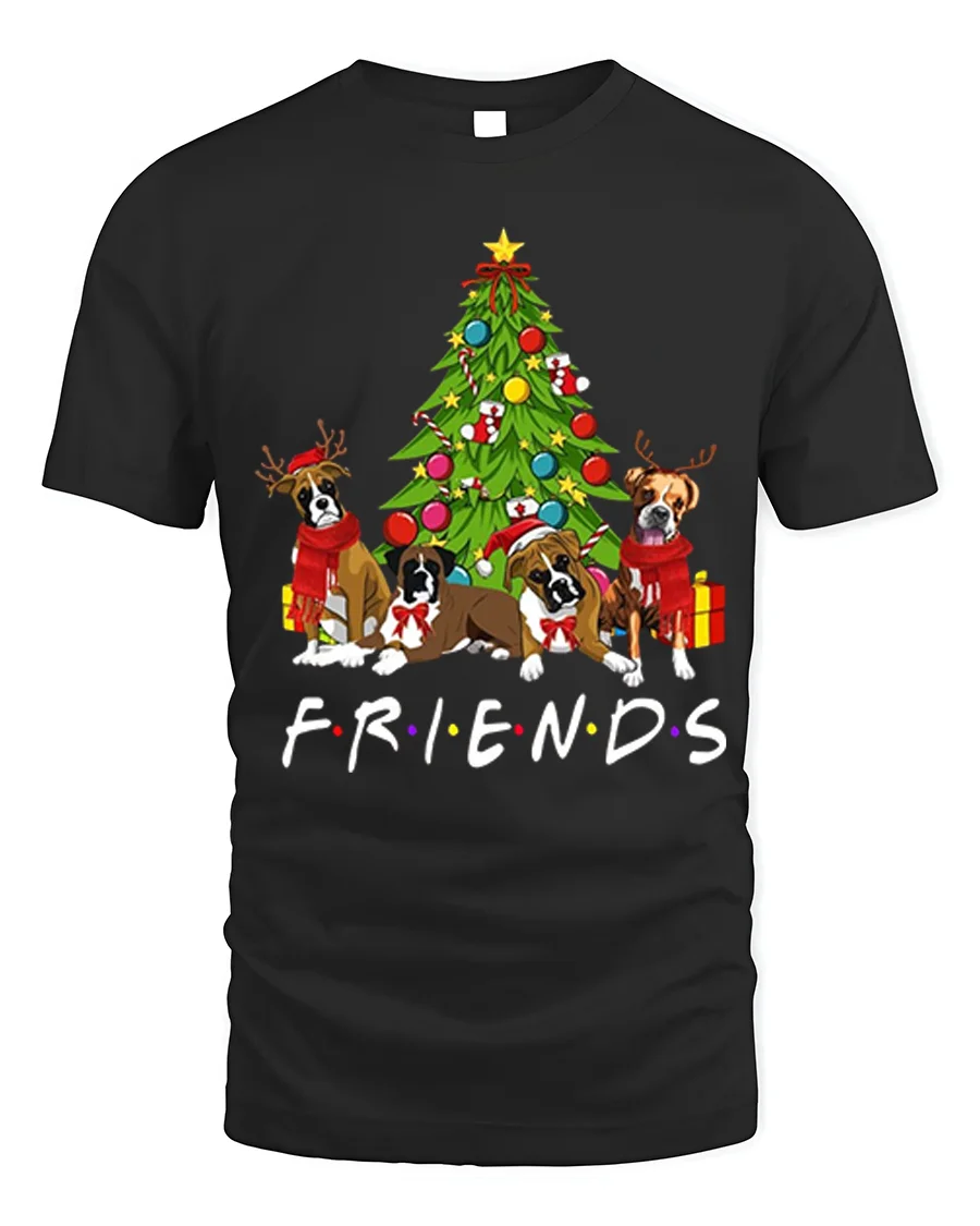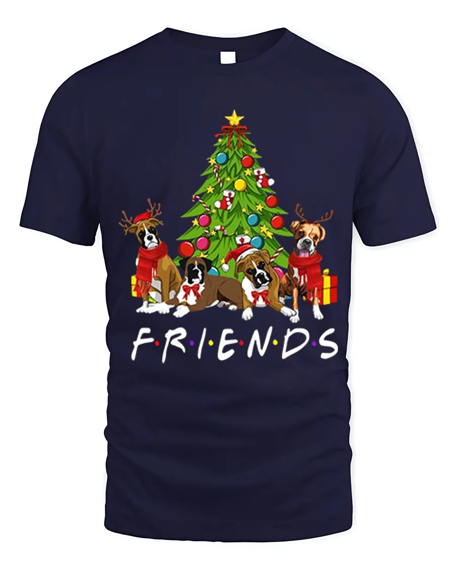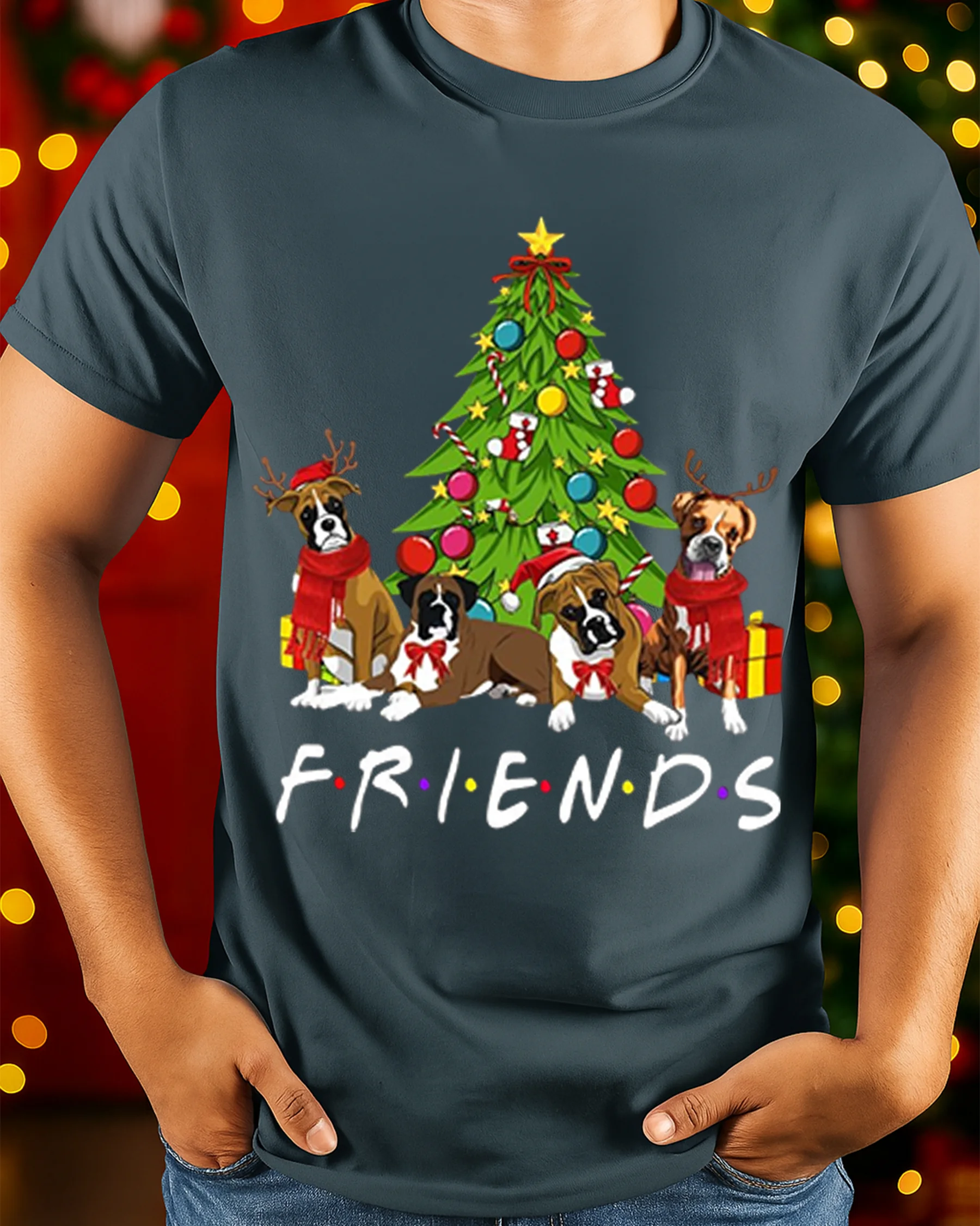 Boxer Dog Christmas Friends T-Shirt Cute Holiday Pet Lover Tee
