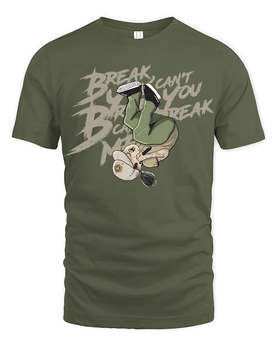 Breakdance Street Style Break Cant You Break Graphic Tee Cool Tshirt - military green t-shirt on white background