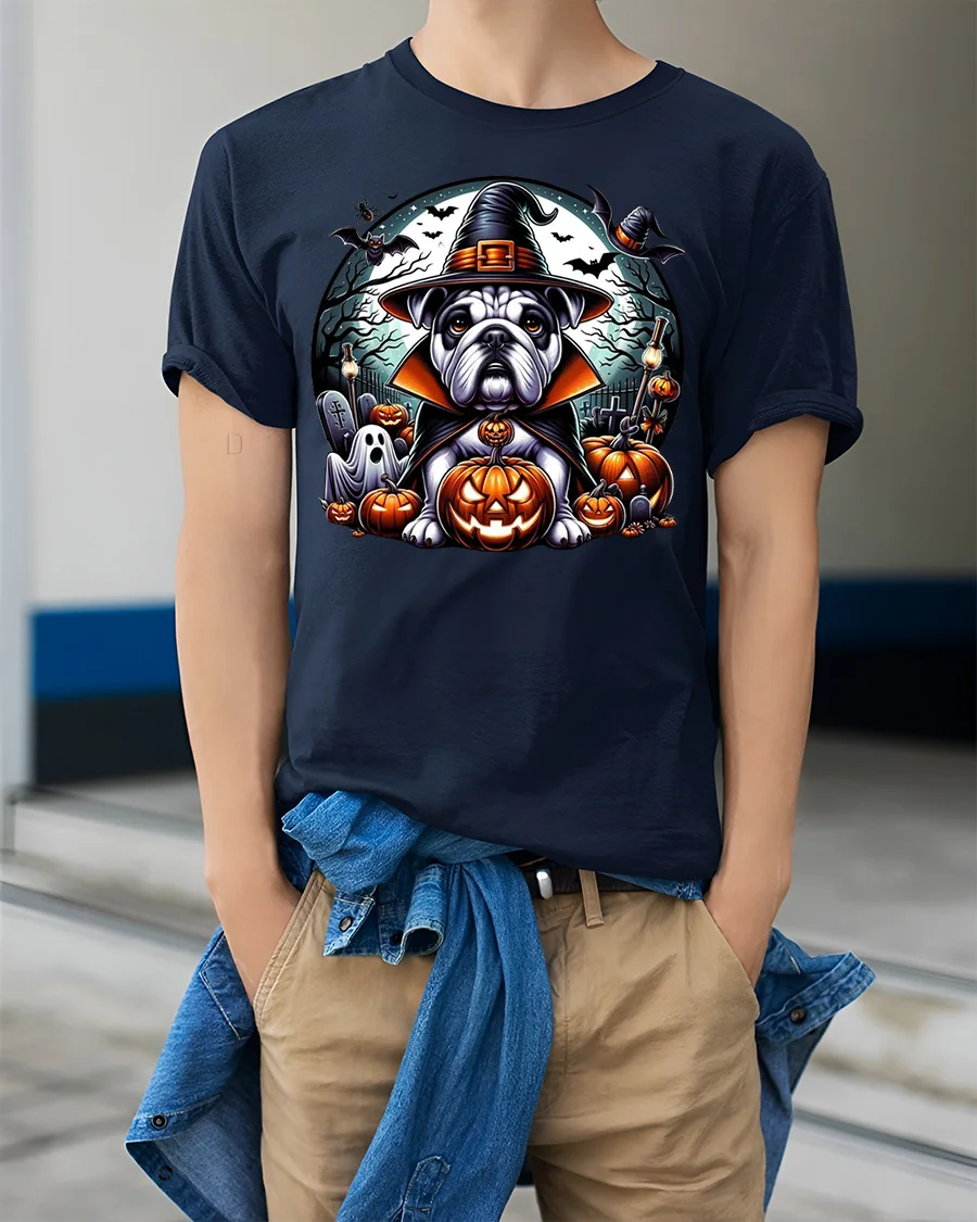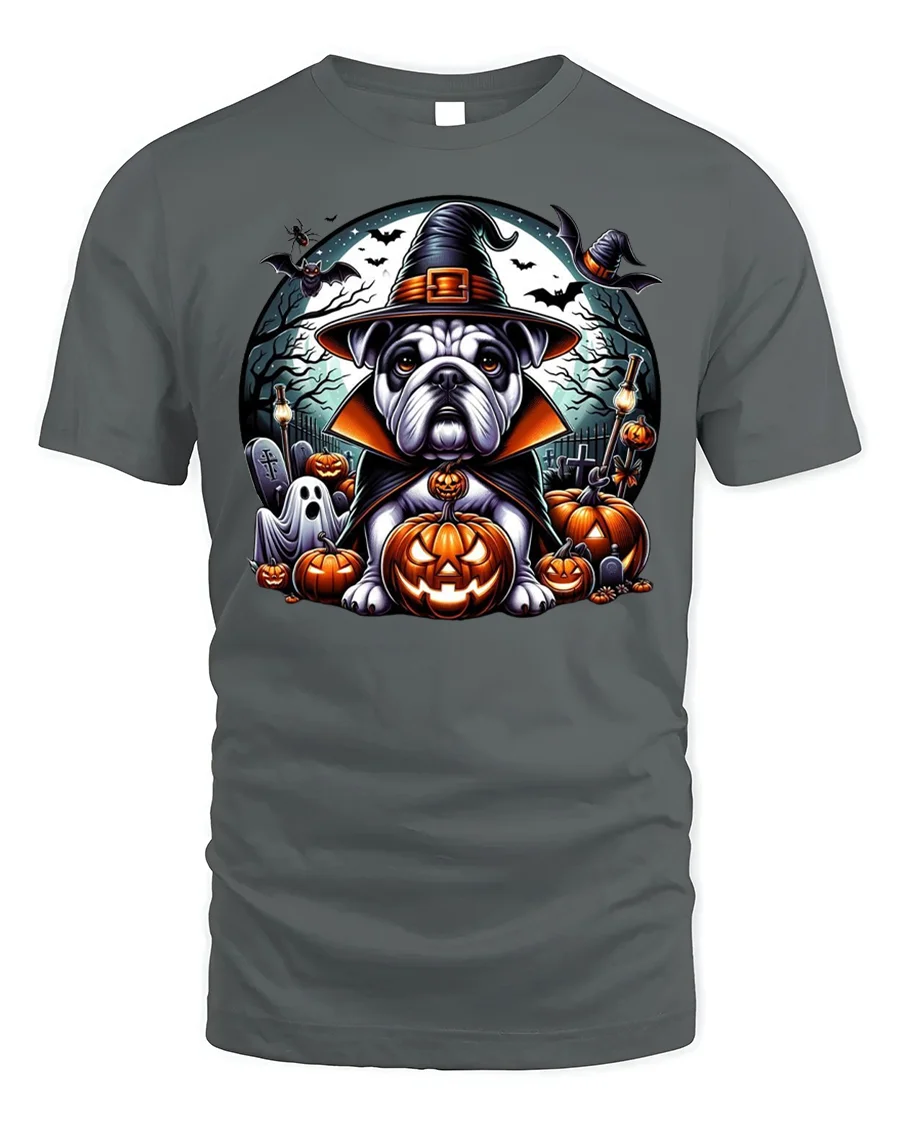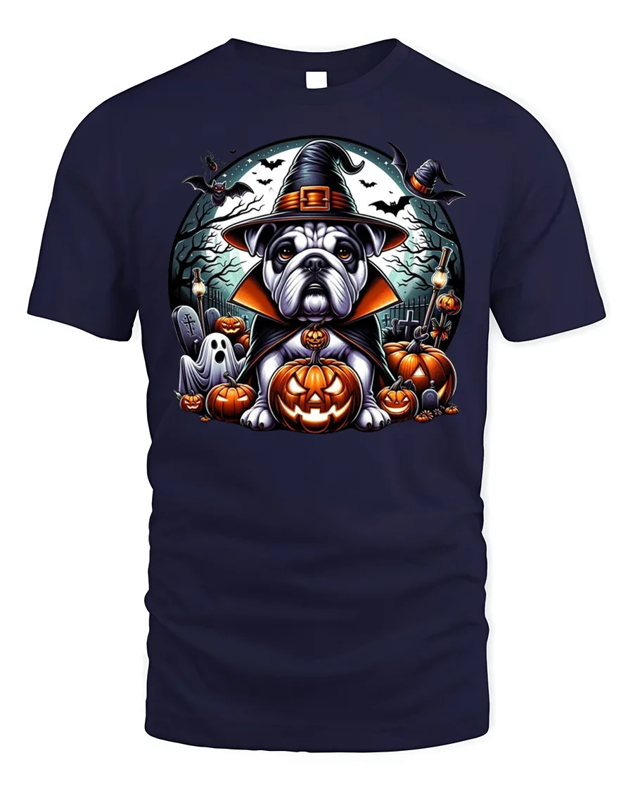 Bulldog Witch Hat Pumpkin Halloween Tshirt Style