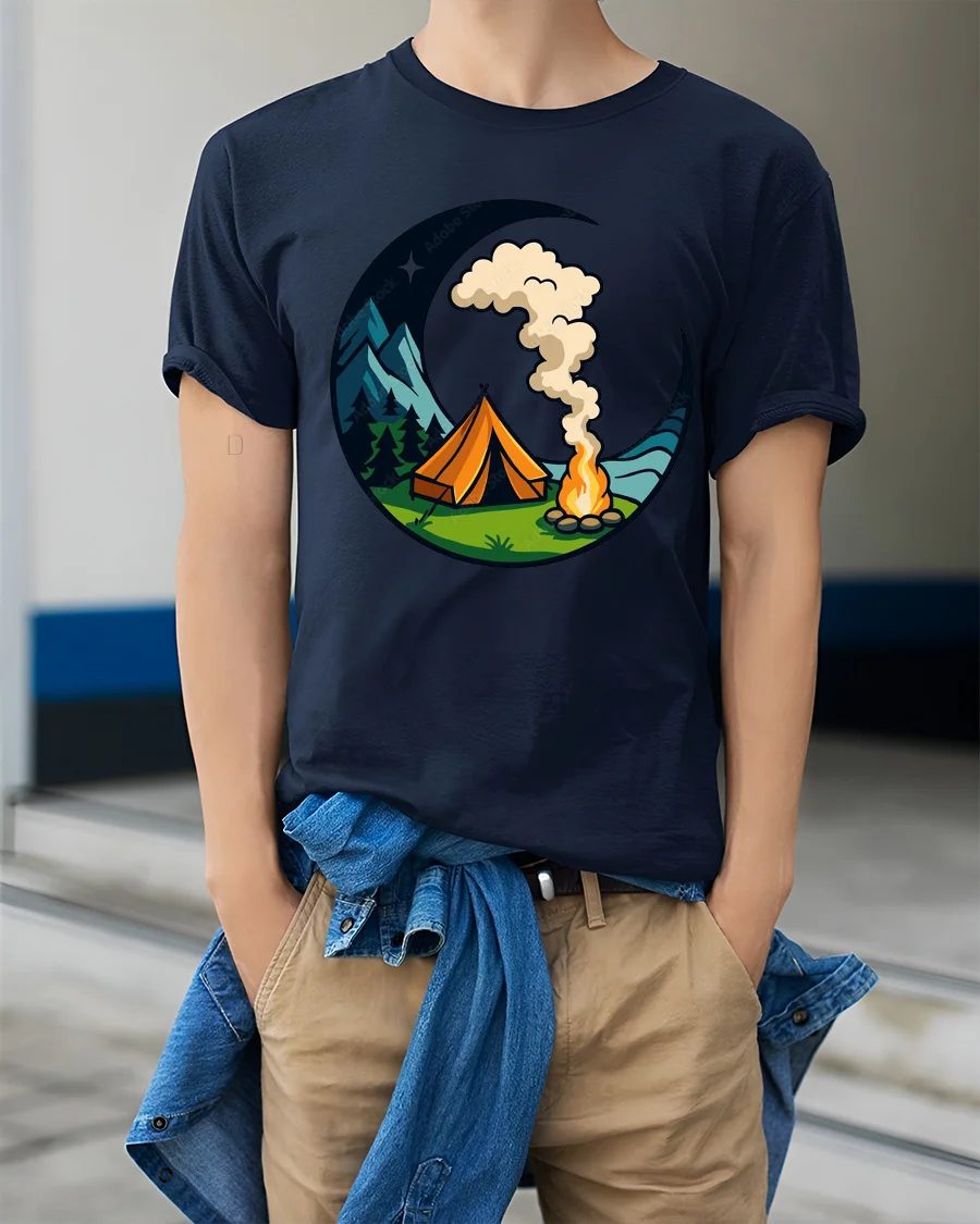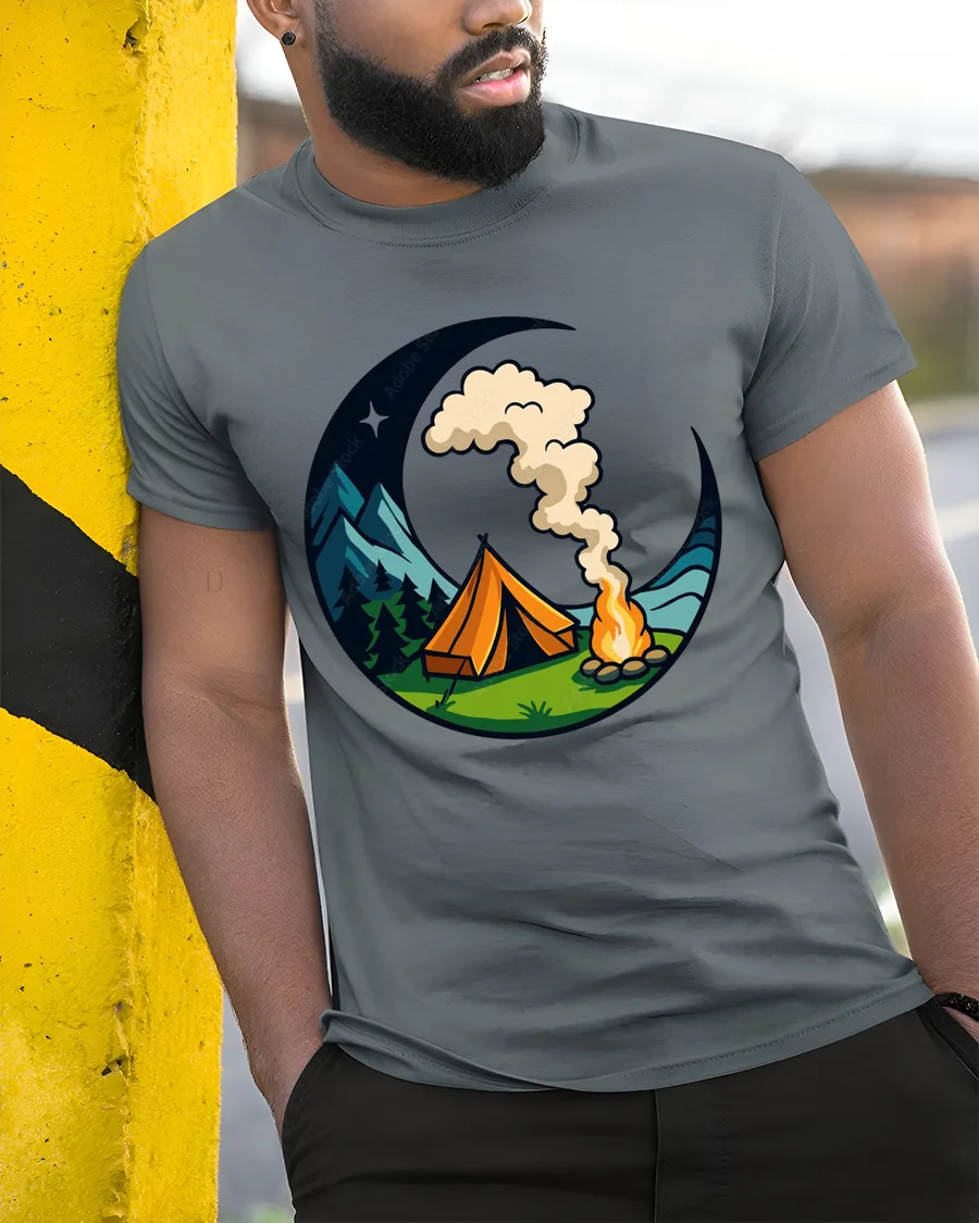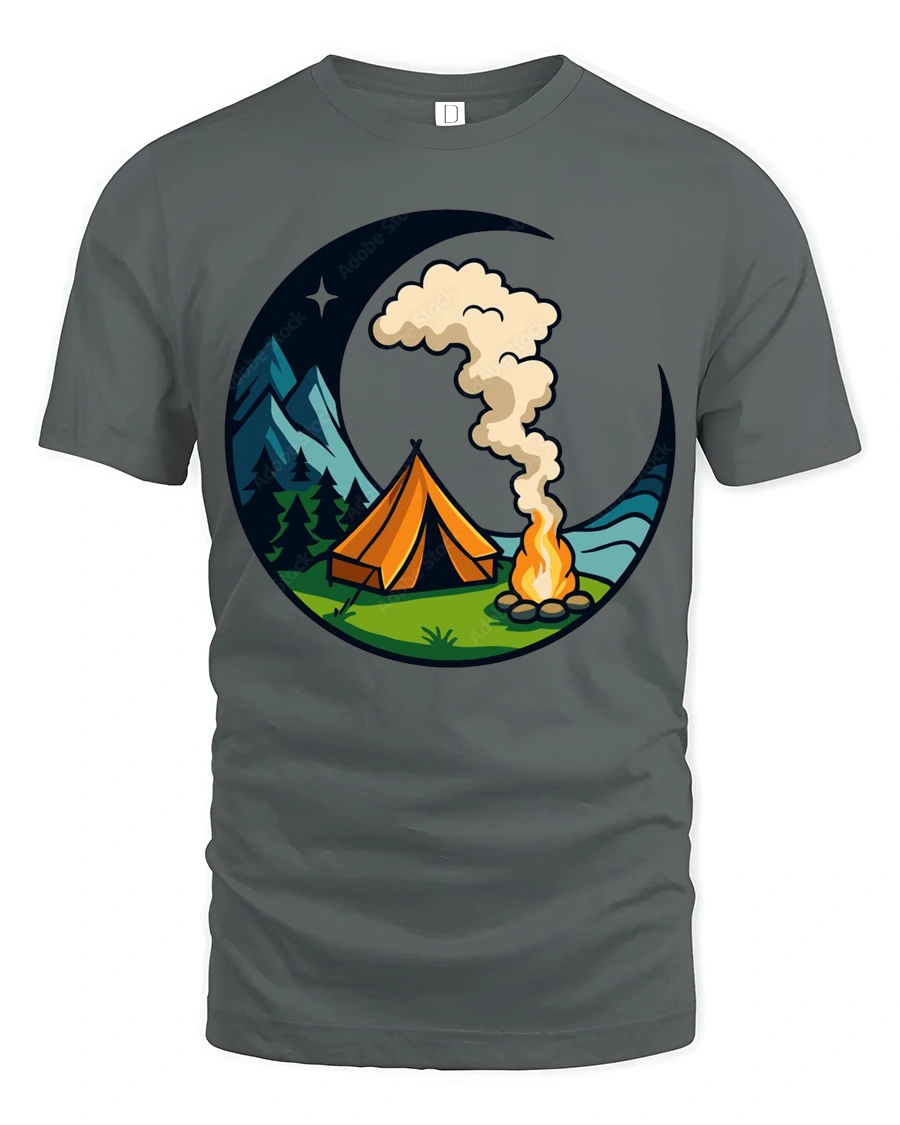 Camping Under The Moon Graphic T Shirt Nature Adventure Style Tee captures the peaceful beauty of outdoor nights in a charming and artistic design.