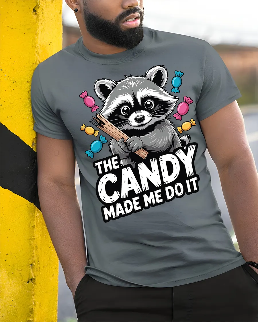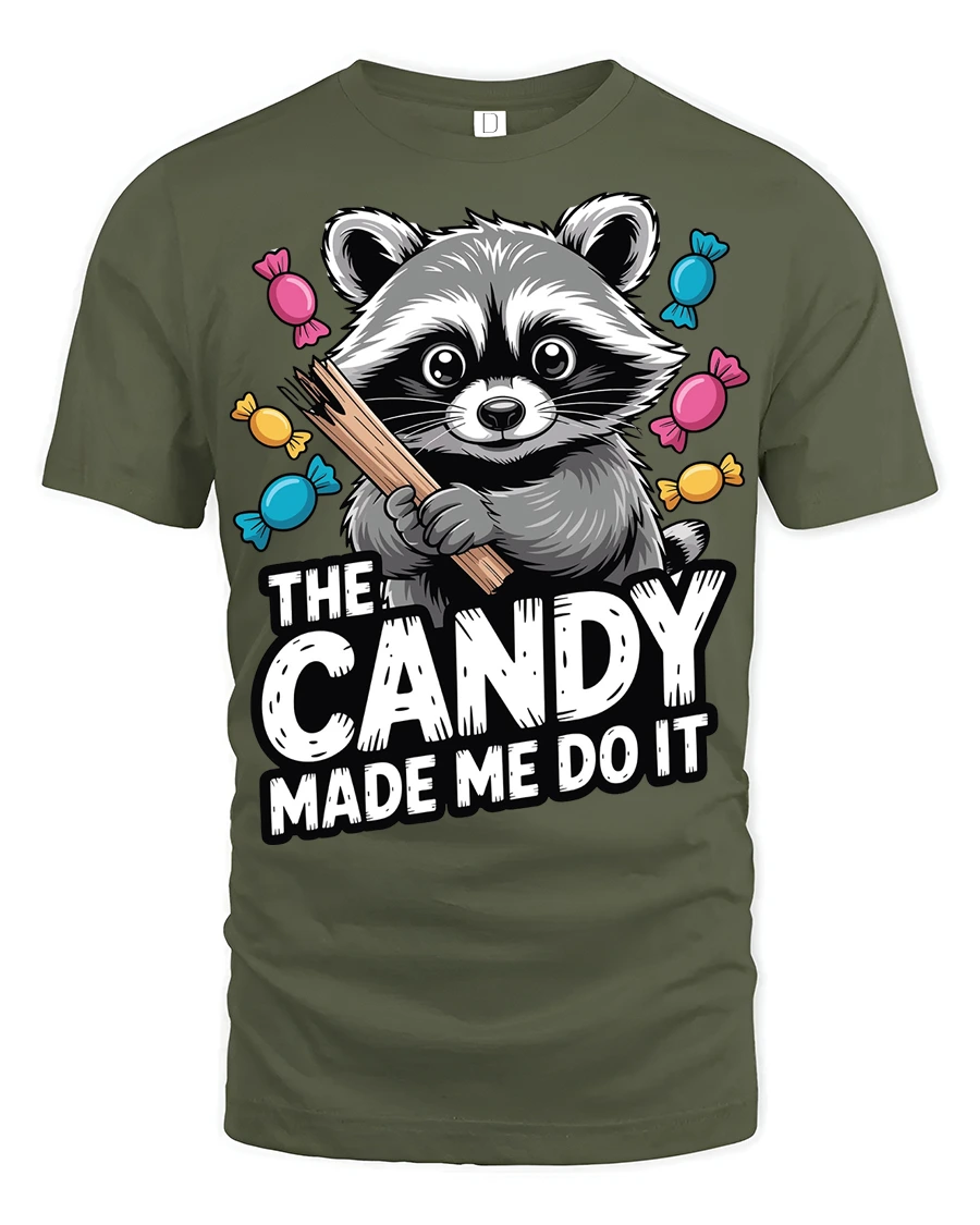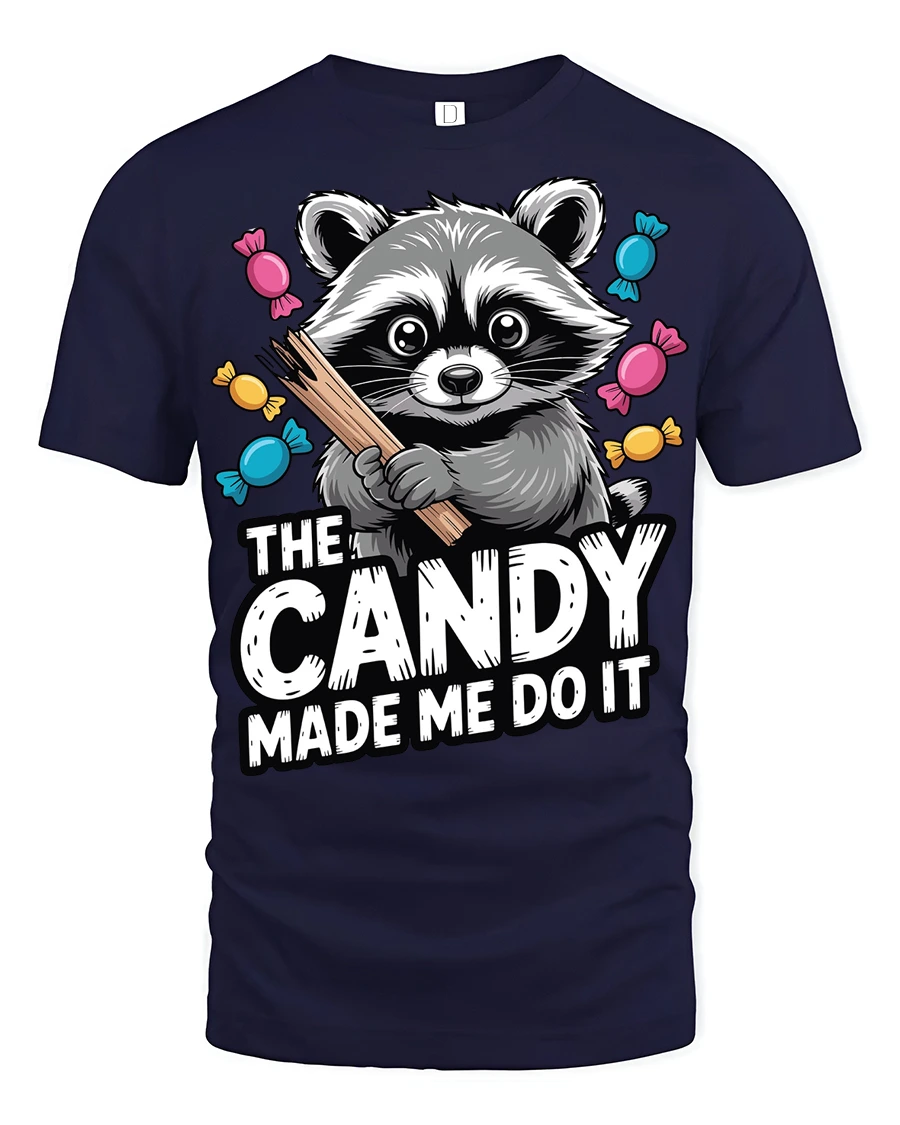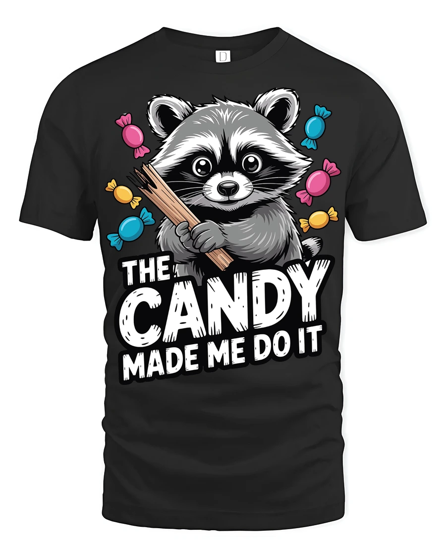 Candy Made Me Do It Raccoon Funny Graphic T Shirt brings a playful and mischievous charm to your everyday style.