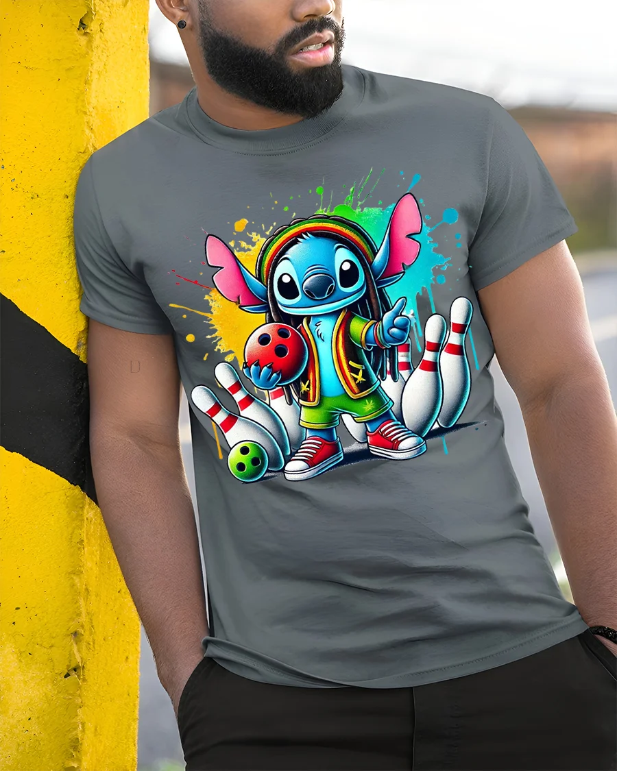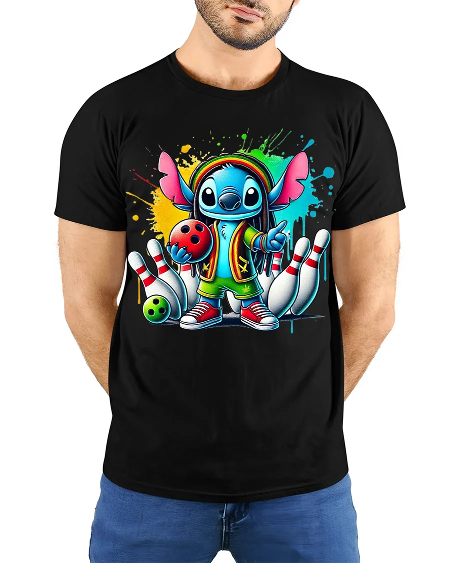 The Cartoon Bowling Strike Colorful Graphic T-Shirt Black is a fun and eye-catching design for bowling fans who love playful streetwear. Featuring a cartoon-inspired character holding a bowling ball with pins flying in the background and vibrant neon splashes of color, this bowling graphic t-shirt combines humor, energy, and modern style in one bold piece. The bright artwork pops against the black fabric, making it a standout shirt both at the lanes and in casual settings.