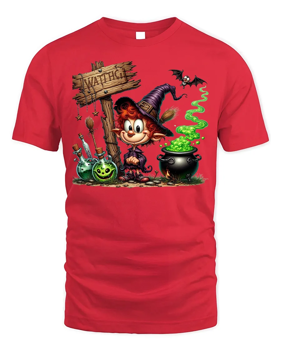 Cartoon Witch Halloween Cauldron Magic T-Shirt is the perfect blend of spooky fun and playful charm for your Halloween celebrations. Featuring a quirky cartoon witch with bright red hair, pointed hat, and a bubbling green cauldron, this shirt captures the whimsical side of Halloween. Surrounded by potions, bats, and eerie glowing smoke, the artwork makes this tee stand out in any festive wardrobe.