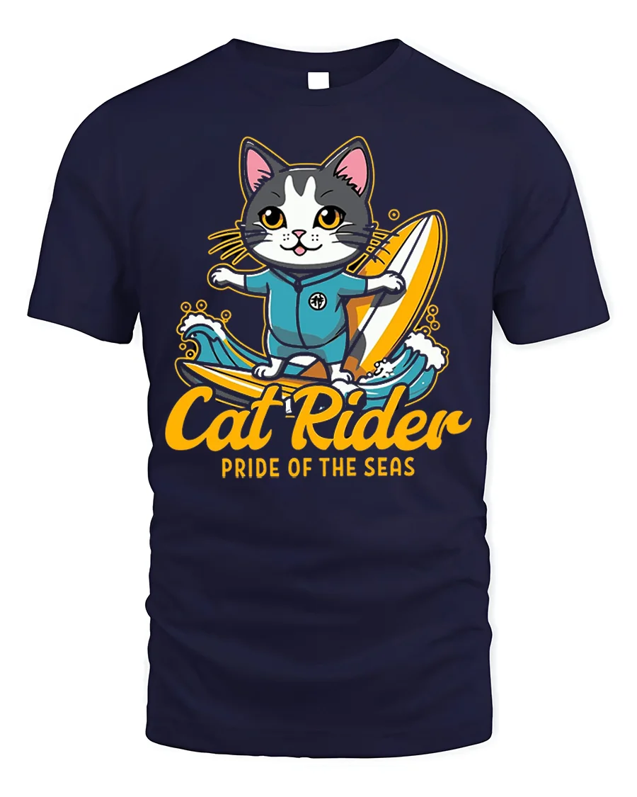 The Cat Rider Surfing Graphic T-Shirt for Ocean Lovers makes an ideal gift for beach lovers, surf culture fans, or anyone who appreciates quirky and creative apparel. Pair it with jeans, shorts, or board shorts to complete your laid-back outfit and let your inner surfer shine.