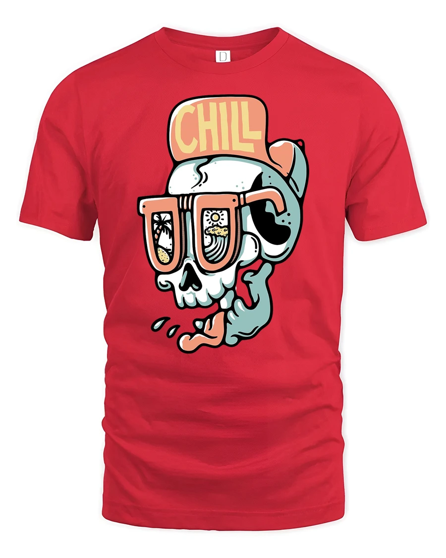 Chill Skull Beach Sunglasses Summer Vibe Funny Graphic Tee Tshirt - red t-shirt on white background