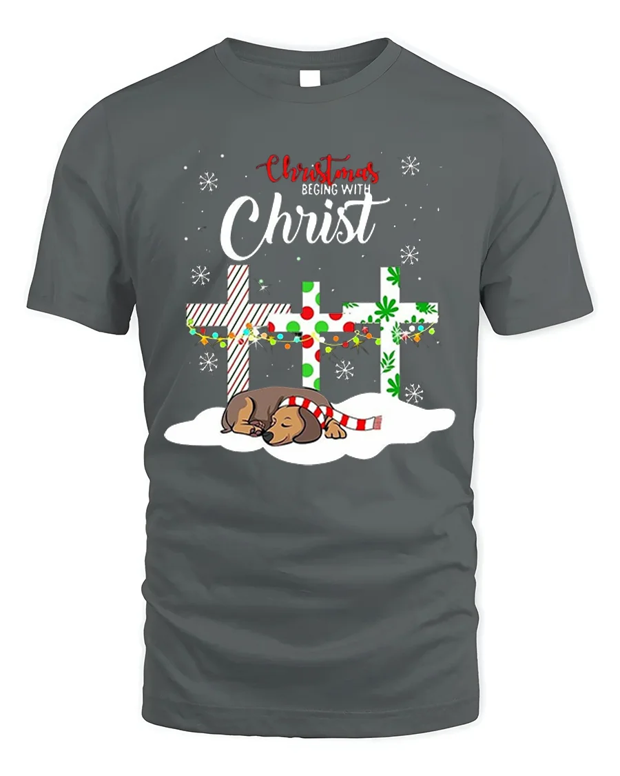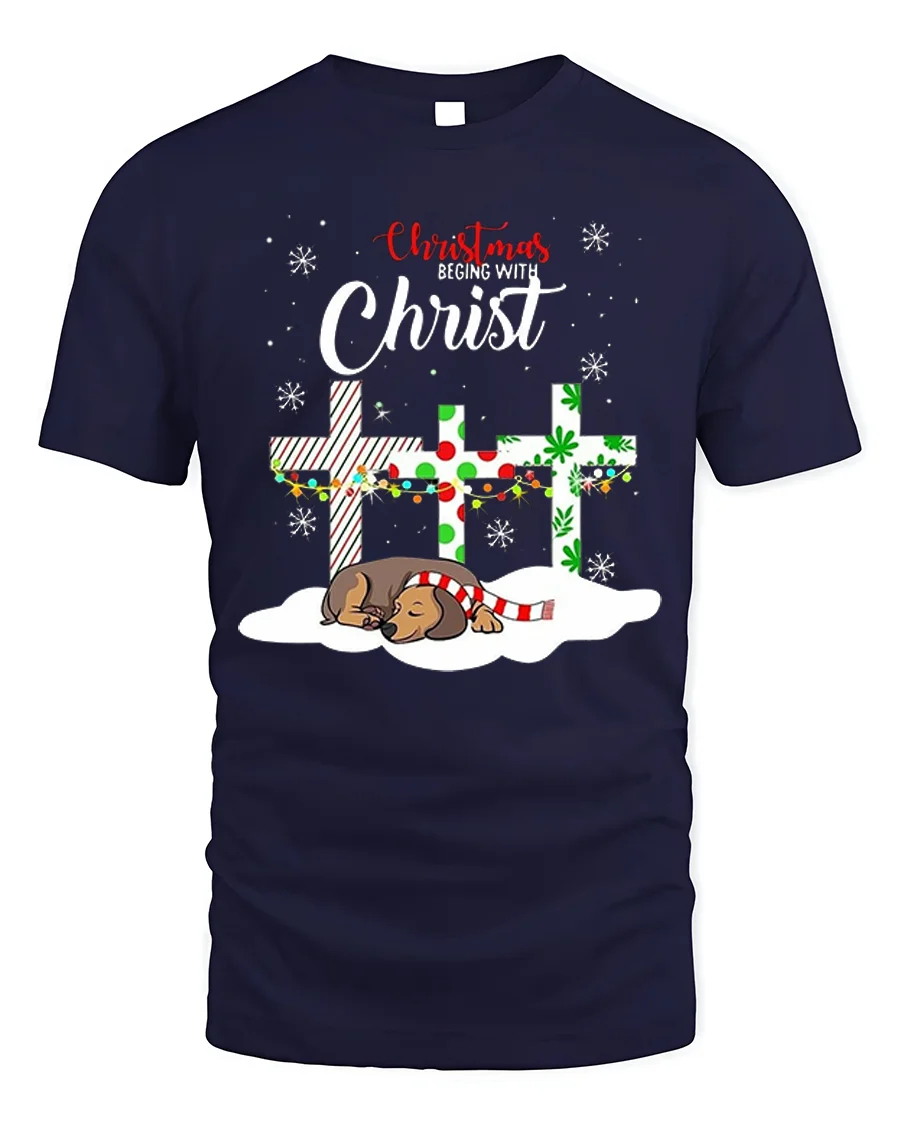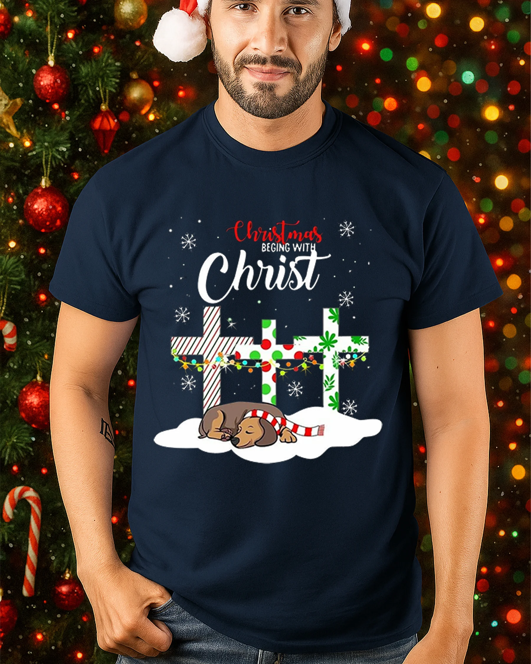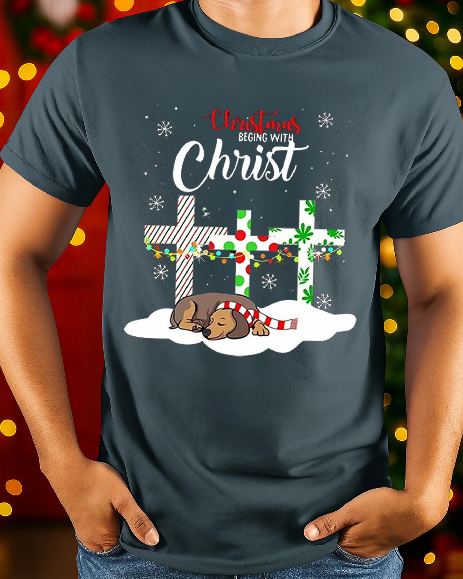 Christmas Begins With Christ Cross Dog Lovers T-Shirt