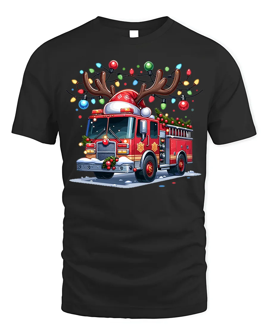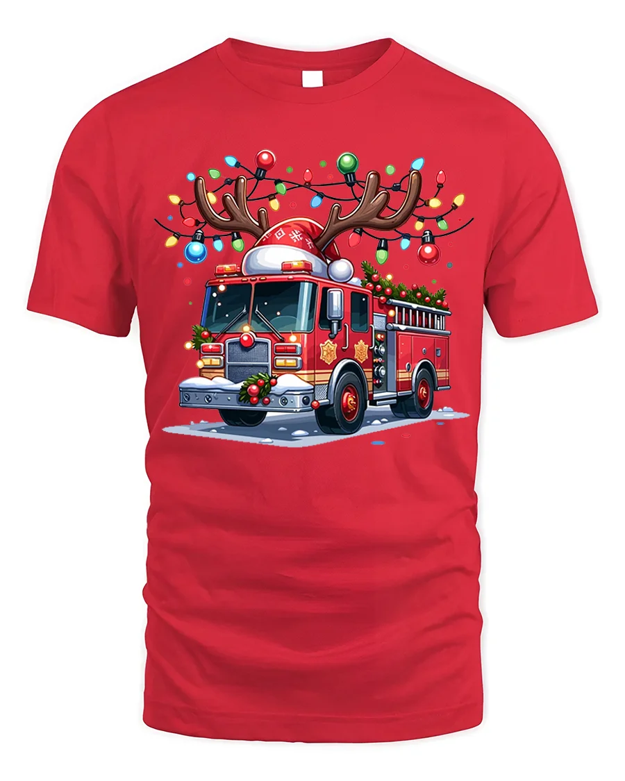Light up your holiday spirit with our Christmas Fire Truck Reindeer Lights Holiday Graphic T-Shirt. Featuring a festive fire truck decorated with colorful Christmas lights, reindeer antlers, and a Santa hat, this playful design brings together the joy of the holidays and the pride of firefighting. It’s a must-have for anyone who loves fire trucks, the holiday season, or both.