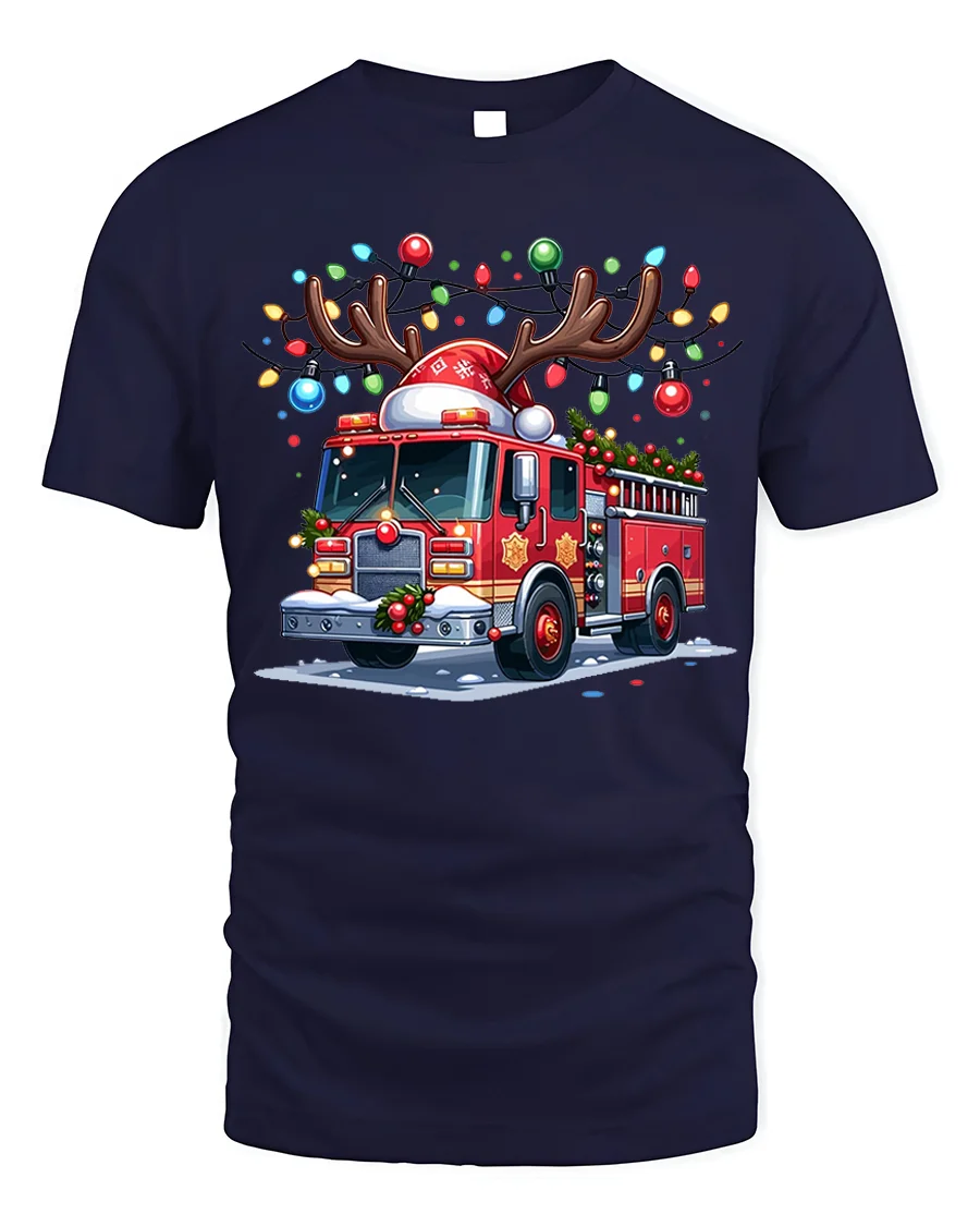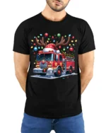 The Christmas Fire Truck Reindeer Lights Holiday Graphic T-Shirt makes an excellent gift for firefighters, first responders, or anyone who admires their dedication. Pair it with jeans or cozy pajamas for an effortlessly merry look. Celebrate the holidays with courage, warmth, and a spark of humor with this festive fire truck design.