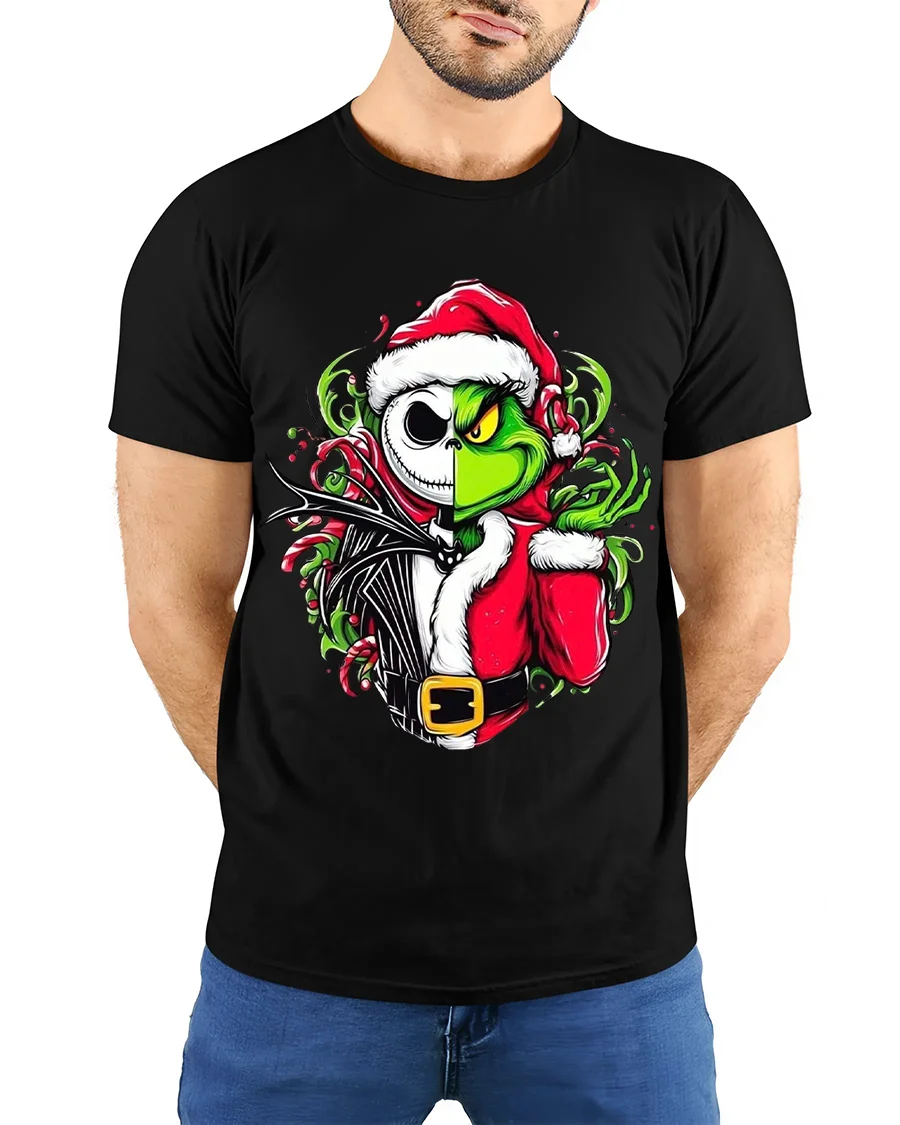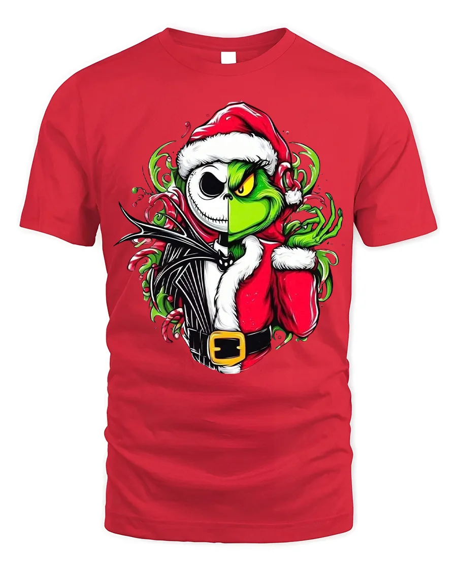 Celebrate the holidays with a spooky twist in the Christmas Grinch Skeleton Santa Mashup T-Shirt. This bold and eye-catching design fuses two iconic holiday personalities into one unforgettable graphic: half sinister skeleton Santa and half mischievous Grinch. With candy canes, festive colors, and holiday flair, this mashup tee captures both the creepy and funny sides of Christmas.