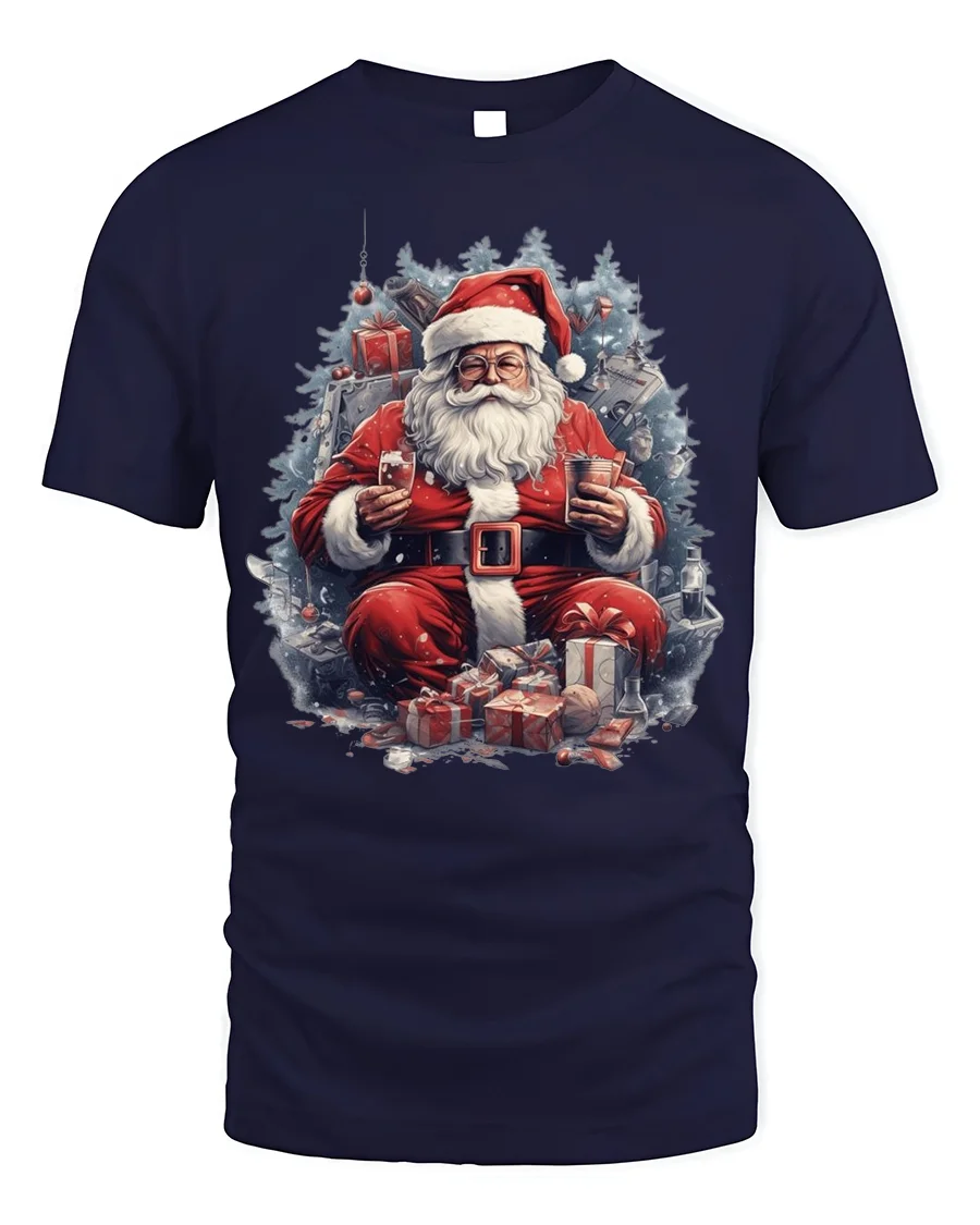 Bring festive cheer to your holiday wardrobe with the Christmas Santa Claus Gifts Holiday T-Shirt. This joyful design features Santa Claus in his classic red suit, surrounded by wrapped presents and festive decorations, capturing the magic of Christmas in one playful graphic. With Santa raising a glass in celebration, this shirt adds a cozy and cheerful vibe to your holiday style.