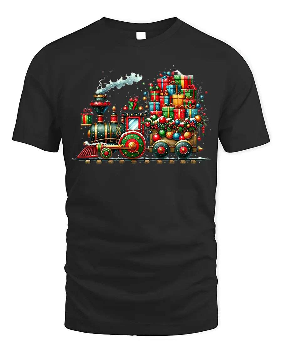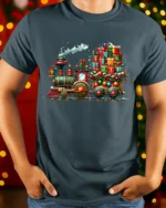 This Christmas Train T-Shirt with Colorful Gifts and Holiday Cheer also makes a wonderful gift for children, adults, and collectors who appreciate festive locomotive designs. Whether worn to holiday parties, family celebrations, or seasonal photos, it spreads joy and excitement wherever it goes. Let this charming Christmas train bring warmth, nostalgia, and fun to your holiday wardrobe.