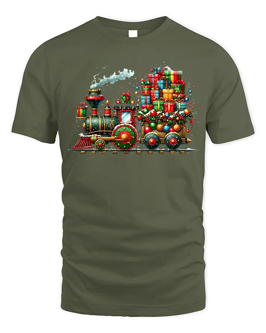 Our Christmas Train T-Shirt with Colorful Gifts and Holiday Cheer brings festive magic to life with a vibrant and beautifully illustrated holiday locomotive. Loaded with bright, wrapped presents and decorated with twinkling ornaments, this cheerful train design captures the excitement and wonder of the Christmas season. The bold colors and joyful details make it an instant favorite for train lovers, holiday enthusiasts, and anyone who enjoys playful seasonal artwork.