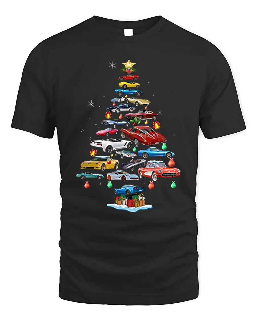 Made from a soft, durable cotton blend, this t-shirt delivers comfort and breathability for all-day wear. The vivid print stands out beautifully against the black background, showcasing vibrant car colors and festive ornaments. Perfect for car shows, Christmas parties, or cozy days at home, it’s a must-have addition to any gearhead’s wardrobe this winter.