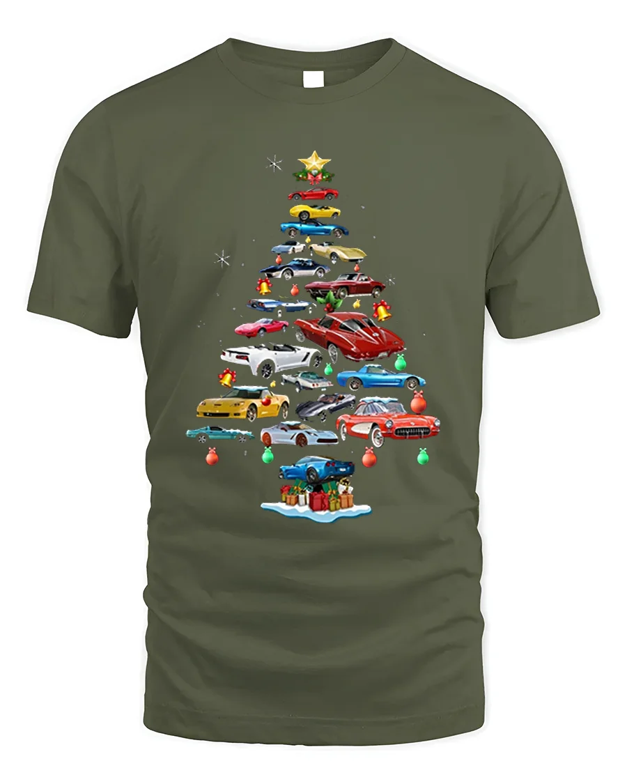 Rev up your holiday spirit with this Classic Car Christmas Tree T-Shirt Vintage Auto Holiday Tee. Featuring a creative Christmas tree made entirely of colorful classic cars stacked in festive style, this unique design is perfect for anyone who loves automobiles, nostalgia, and the magic of the holiday season. It’s a fun and stylish way to combine your passion for cars with your Christmas cheer.