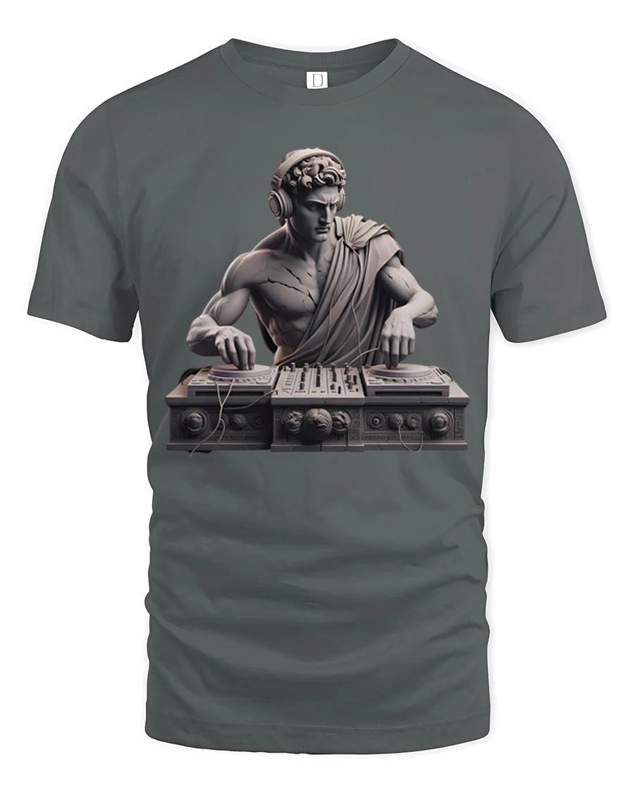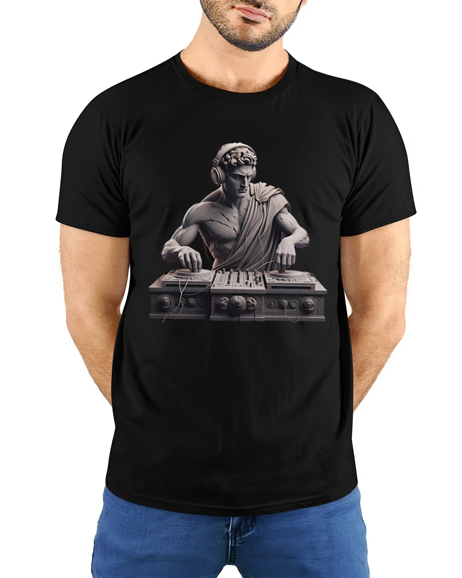 This classical DJ statue music producer greek art graphic t shirt combines timeless sculpture aesthetics with modern music culture in a creative and humorous design.