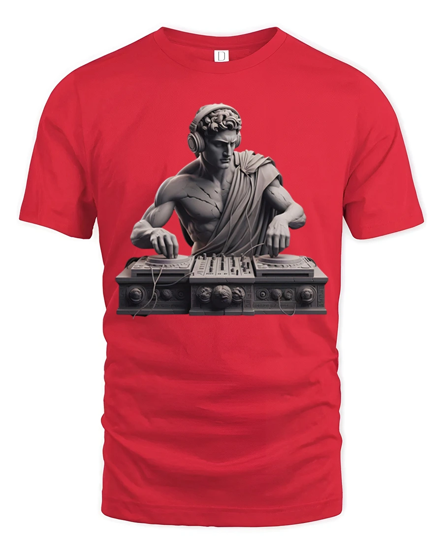 Classical DJ Statue Music Producer Greek Art Graphic T Shirt - red t-shirt on white background