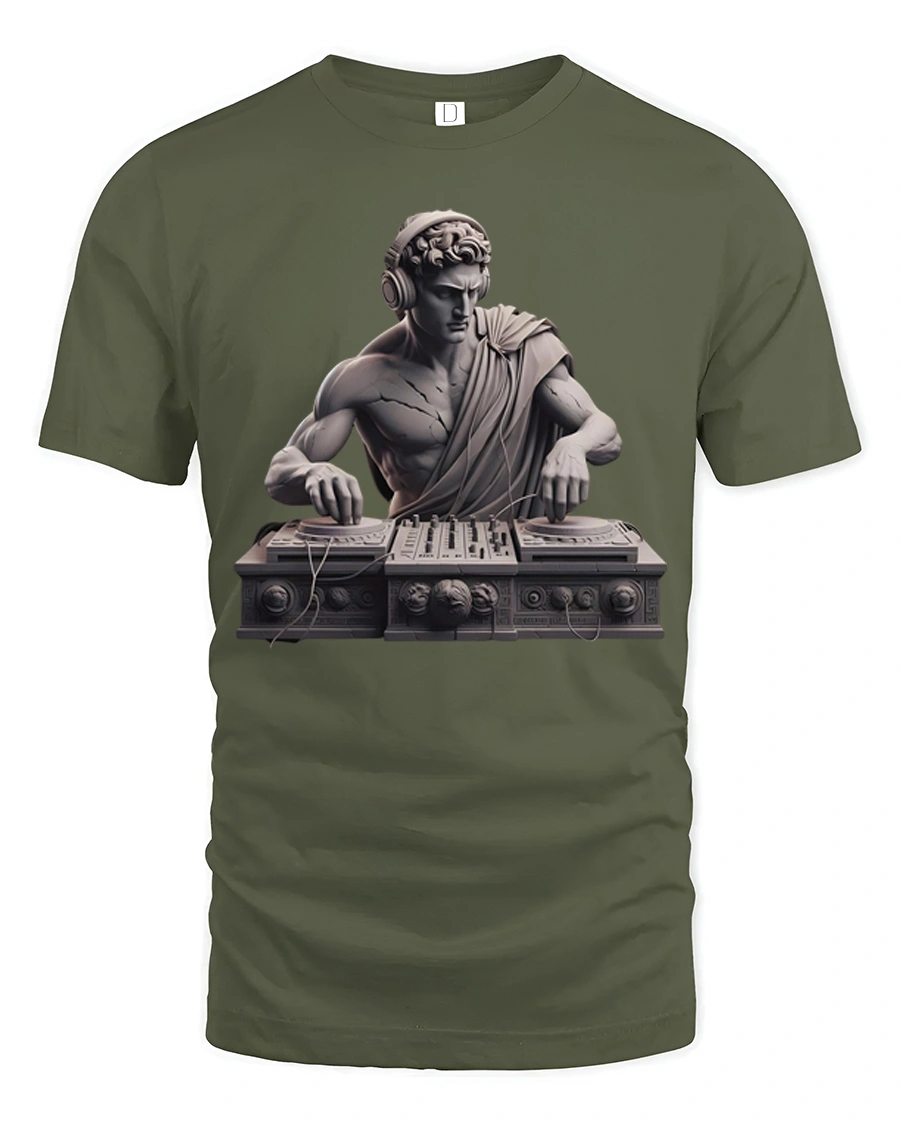 Classical DJ Statue Music Producer Greek Art Graphic T Shirt - military green t-shirt on white background