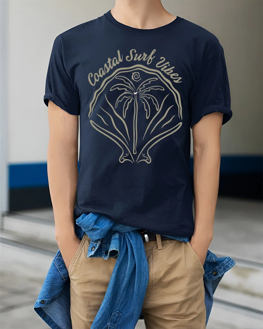 Coastal Surf Vibes Palm Wave Graphic T Shirt Beach Tee captures the essence of relaxed seaside living with a clean and artistic design.