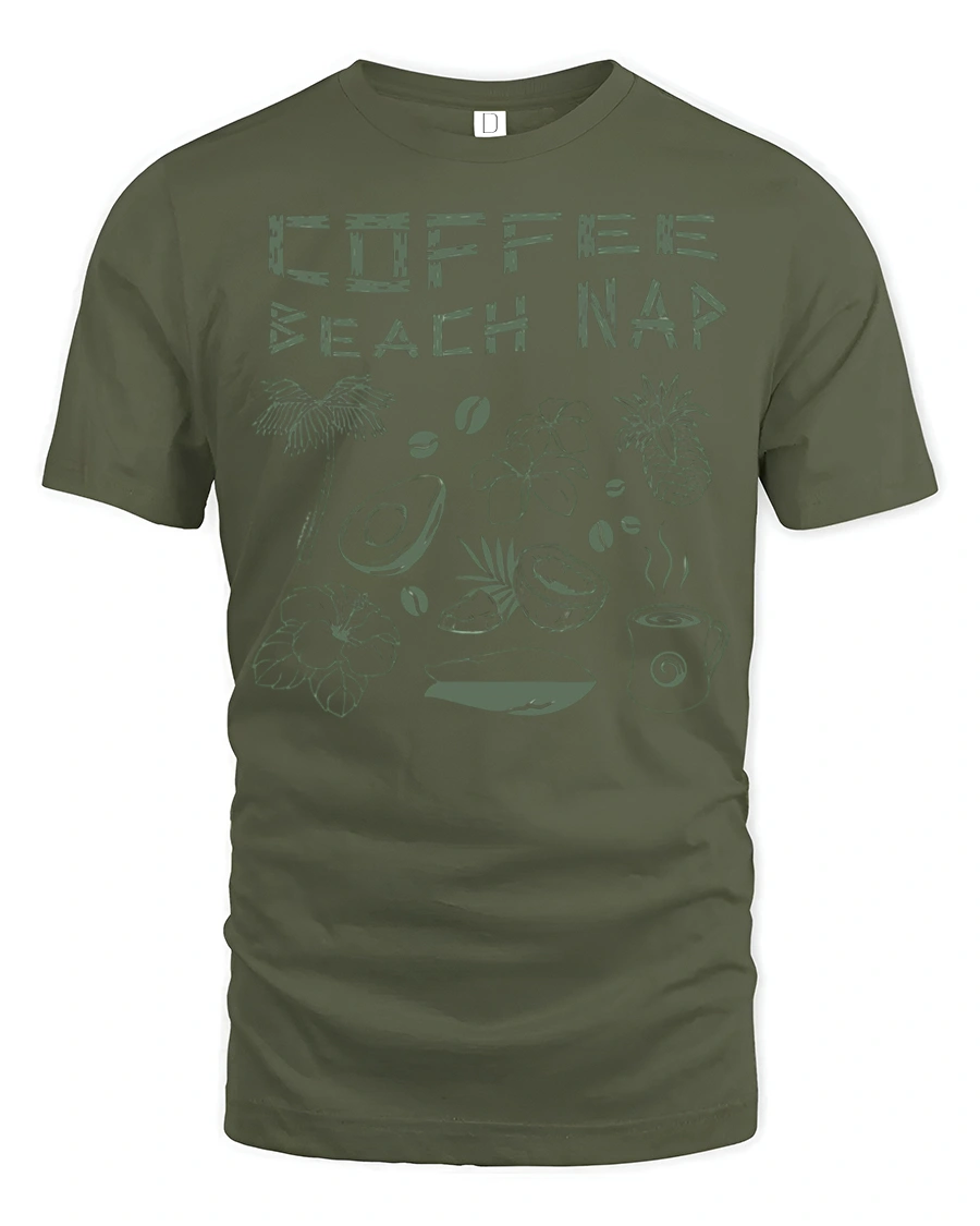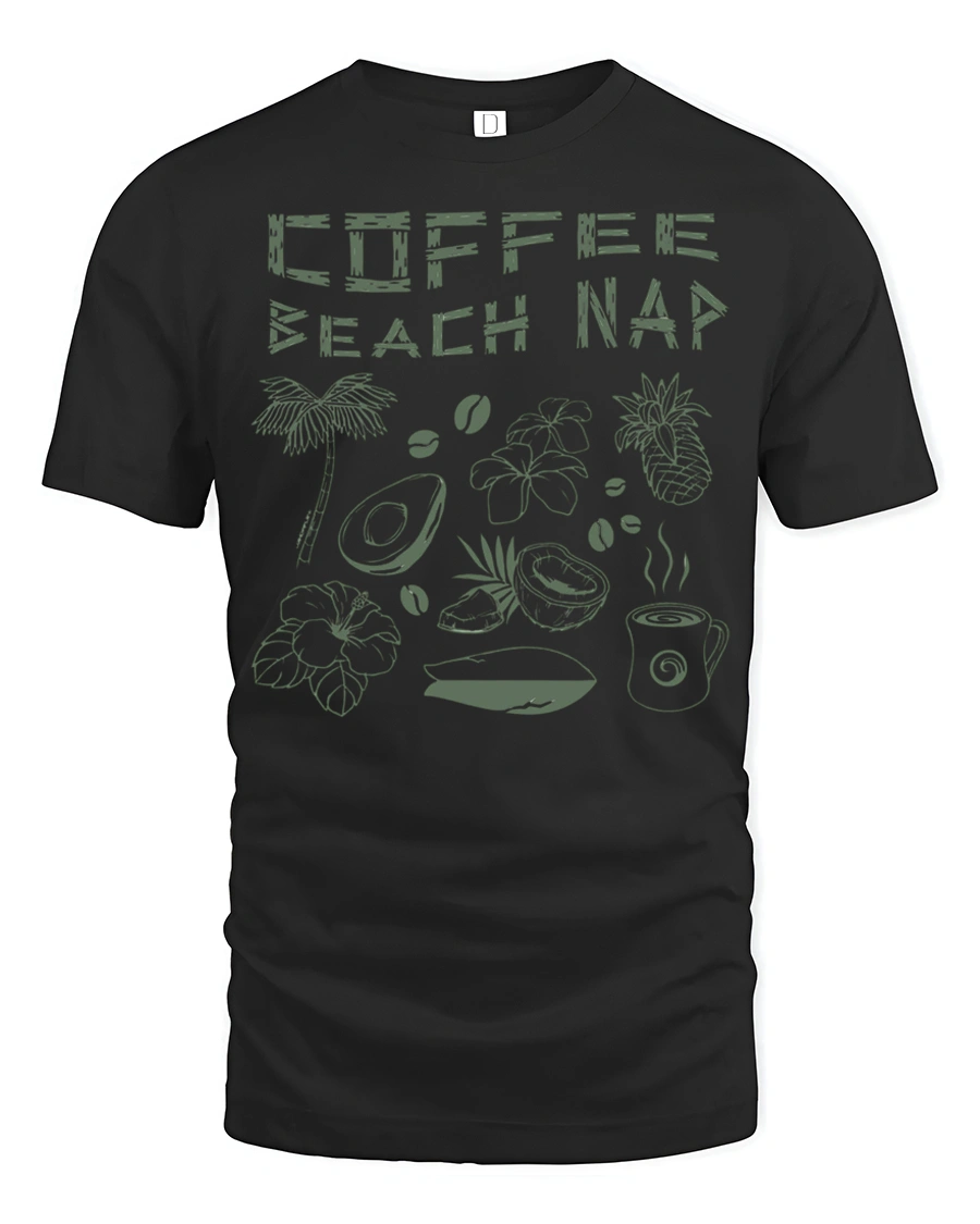 Coffee Beach Nap Tropical Graphic T Shirt Chill Island Tee captures the ultimate relaxed lifestyle with a fun and refreshing design.