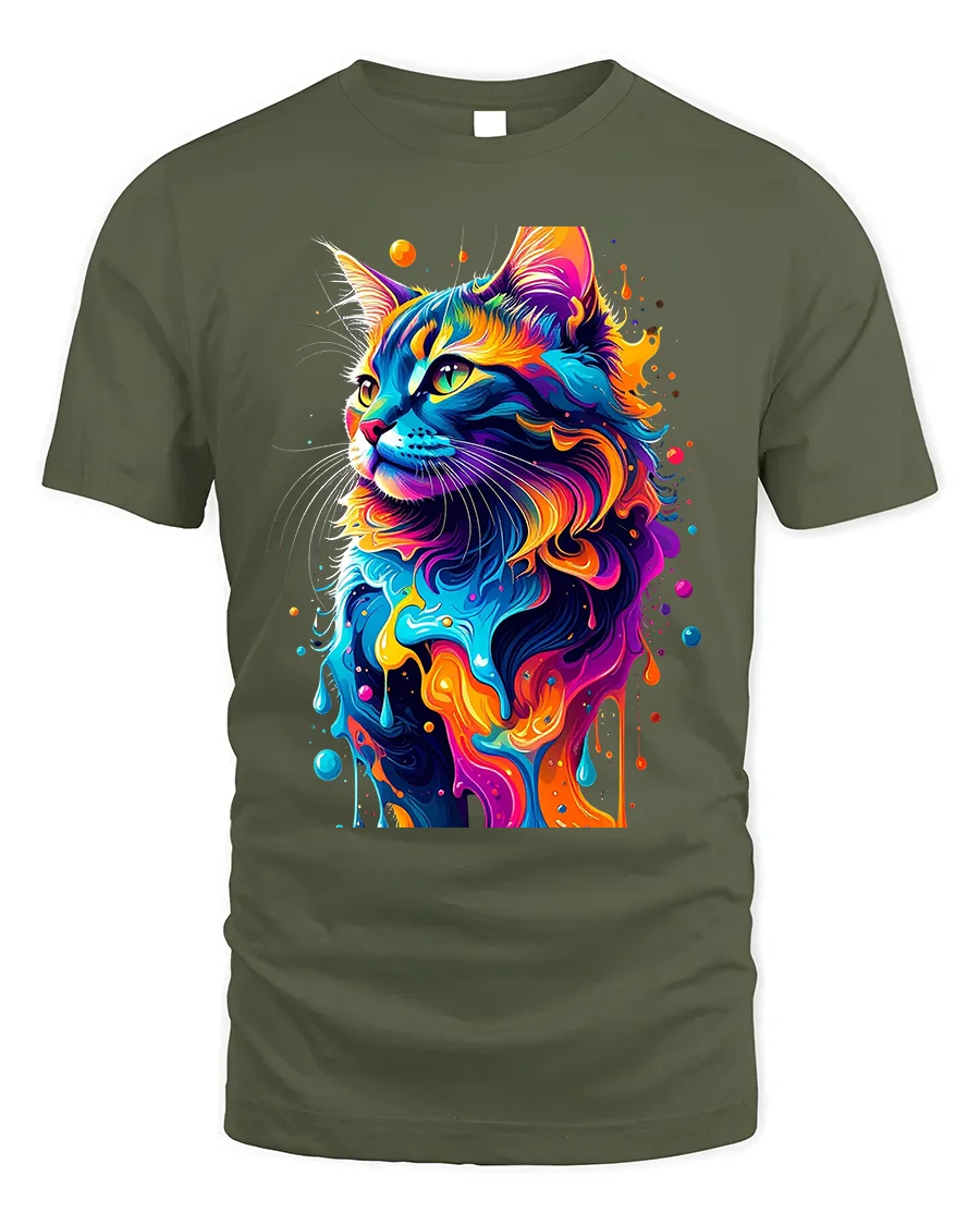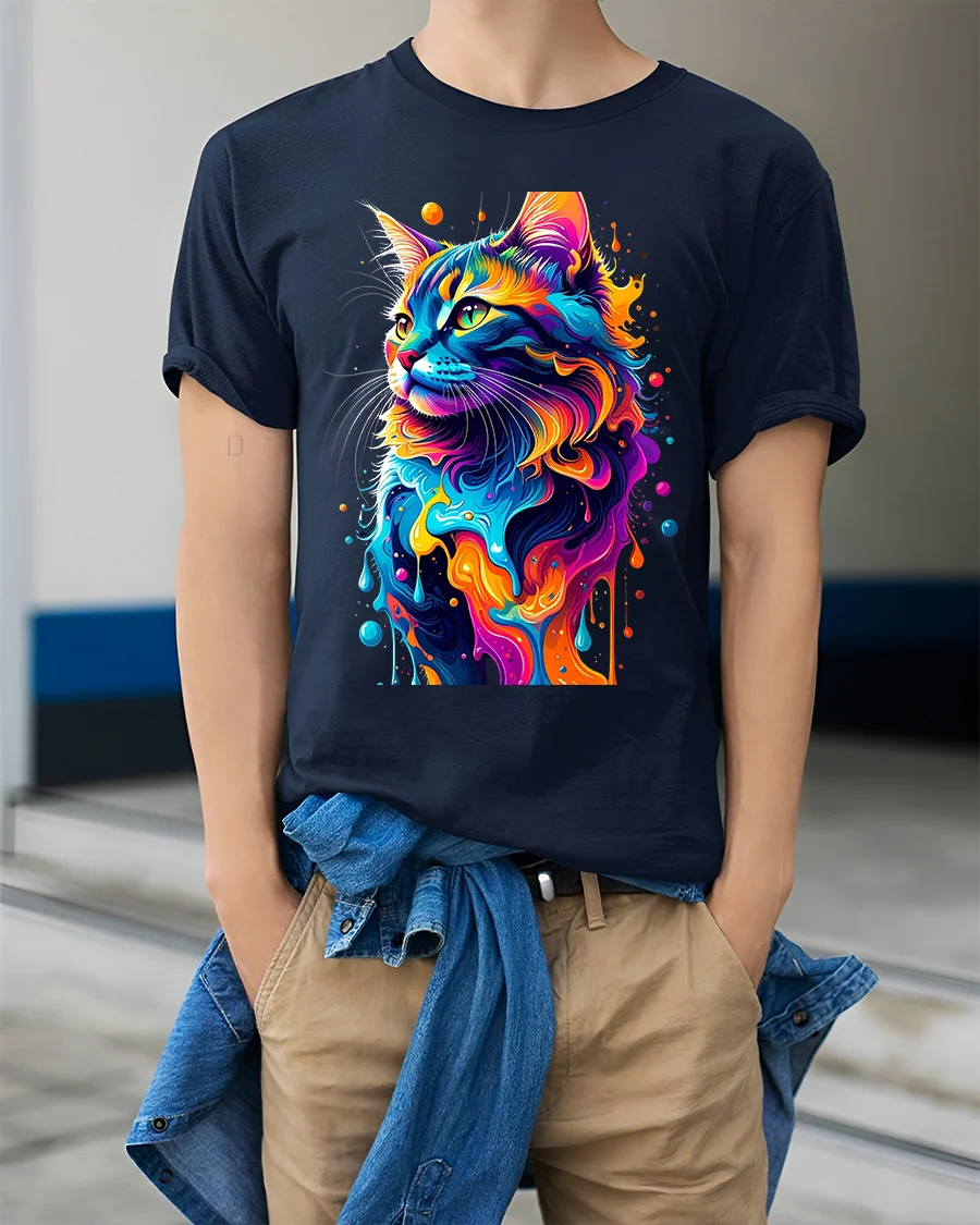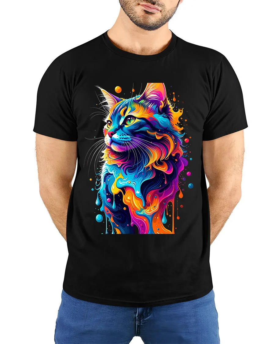 Perfect for cat lovers and art enthusiasts, this shirt adds a splash of color and personality to any outfit. Pair it with jeans, shorts, or a casual jacket to create a stylish, expressive look that captures attention wherever you go. The vivid design and premium print quality ensure long-lasting color and durability through every wear and wash.