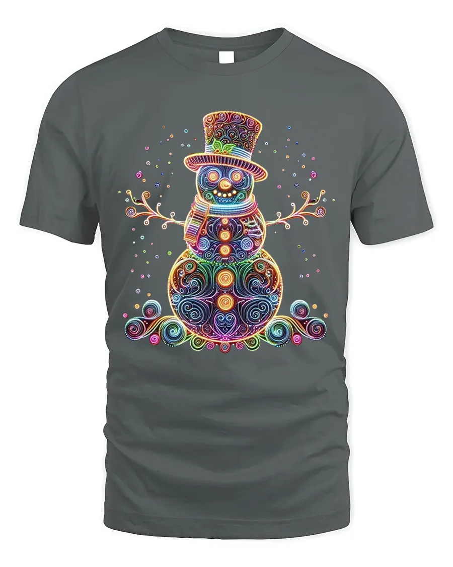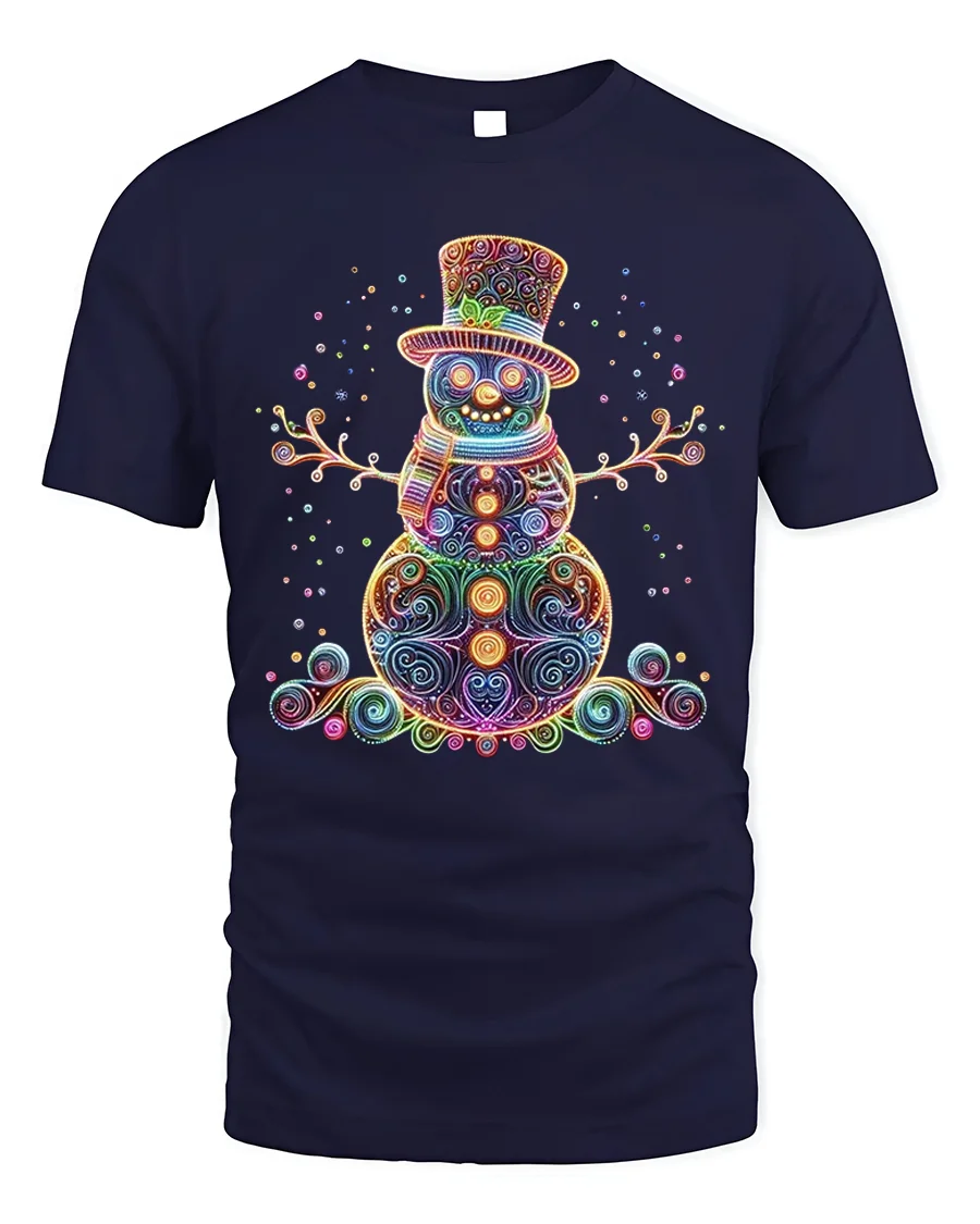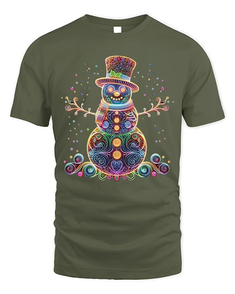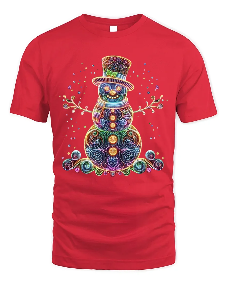 This colorful snowman t-shirt also makes a unique and thoughtful gift for art lovers or holiday enthusiasts. Celebrate the joy of winter and express your creativity through this stunning and playful design. Make your holiday look as bright and merry as your spirit with this artistic snowman holiday t-shirt.