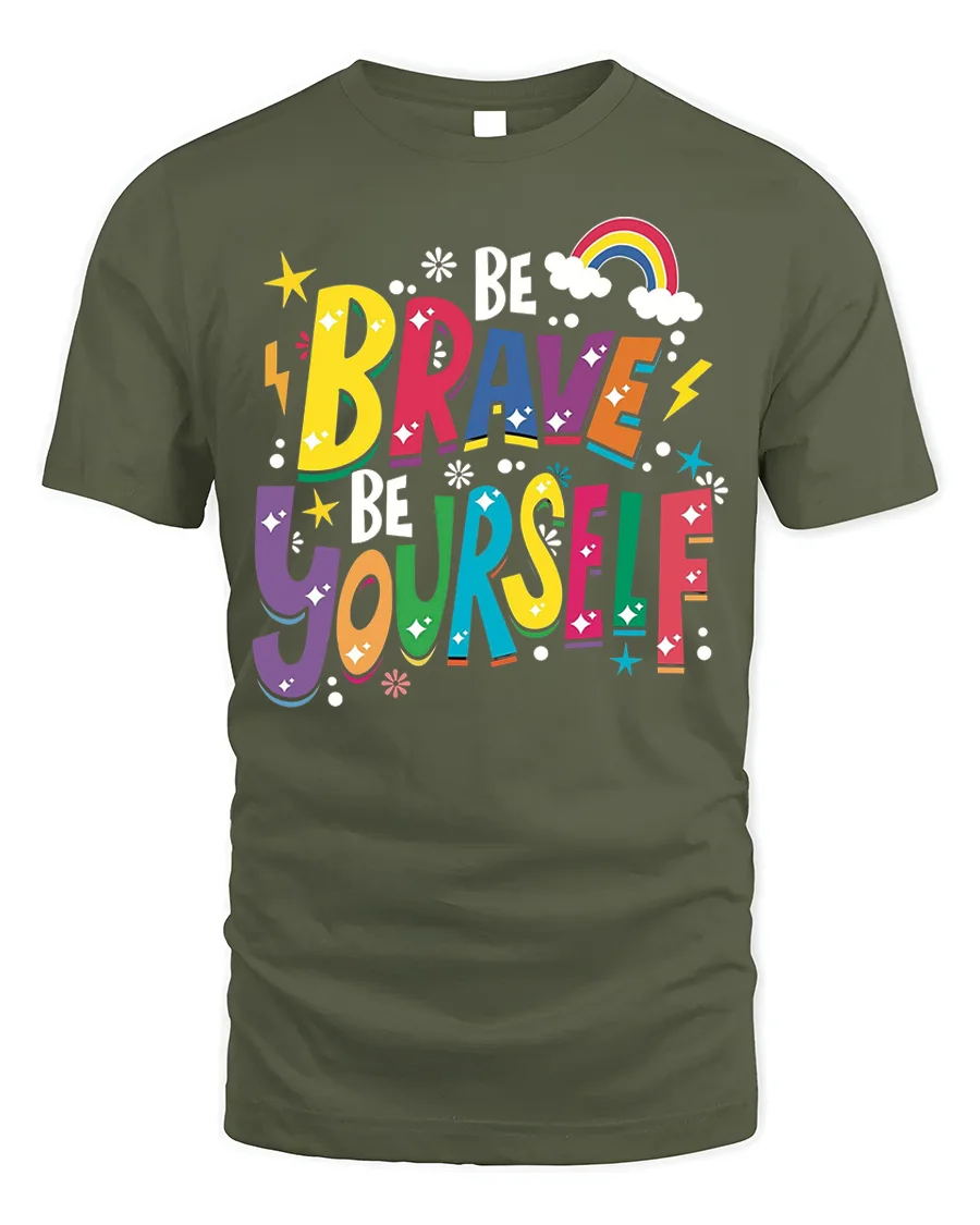 Show your confidence and positivity with this Colorful Be Brave Be Yourself Positive T-Shirt, designed to inspire courage, self-love, and authenticity.